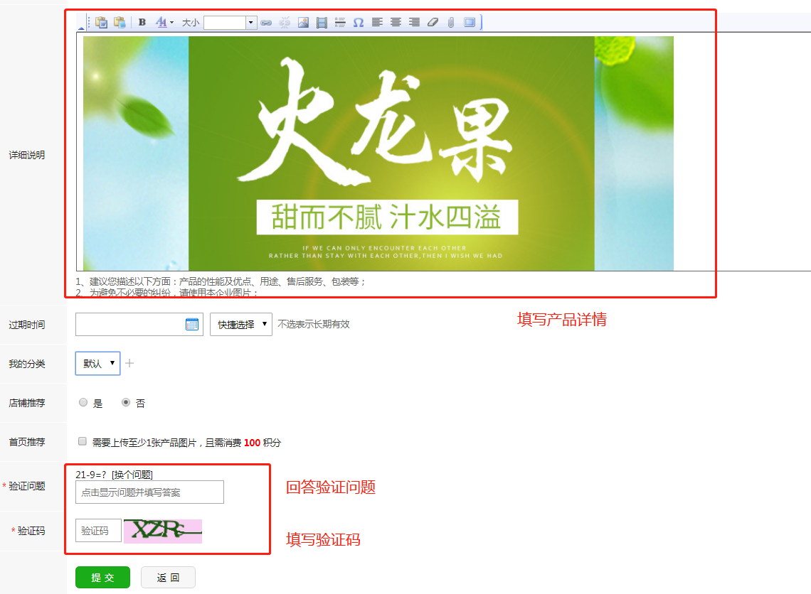 4.填寫對應(yīng)的產(chǎn)品信息
