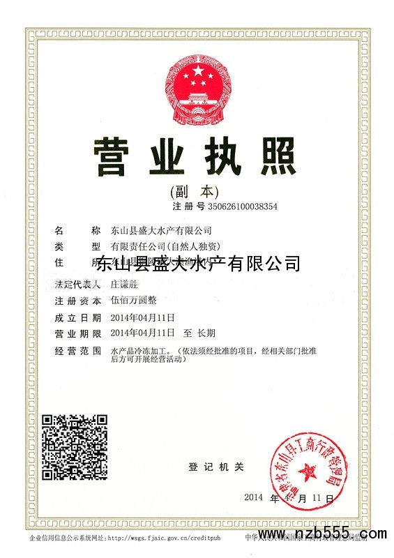 | 發(fā)證機(jī)構(gòu): | 福建省東山縣工商行政管理局 | 發(fā)證時(shí)間 : | 2014-04-11 |
