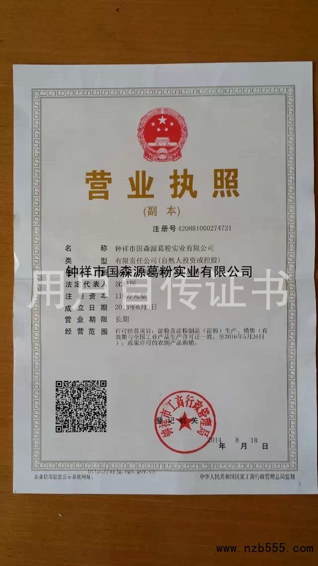 | 發(fā)證機(jī)構(gòu): | 鐘祥市工商行政管理局 | 發(fā)證時(shí)間 : | 2014-08-18 |