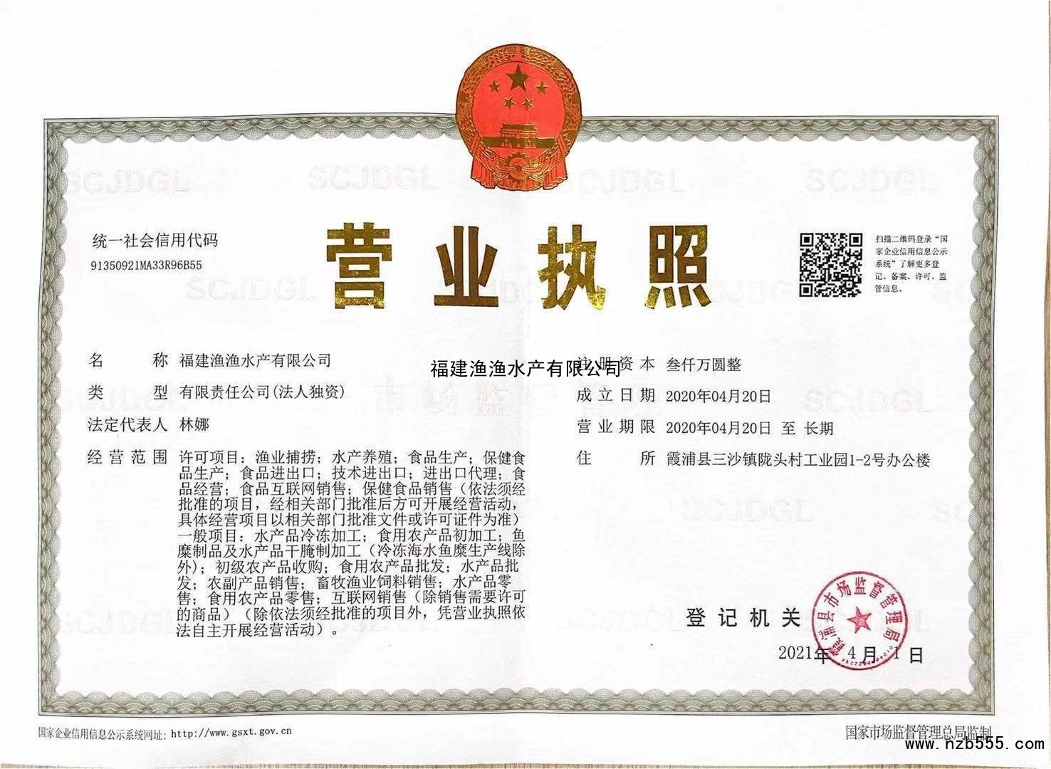 | 發(fā)證機(jī)構(gòu): | 霞浦縣市場(chǎng)監(jiān)督管理局 | 發(fā)證時(shí)間 : | 2021-04-01 |