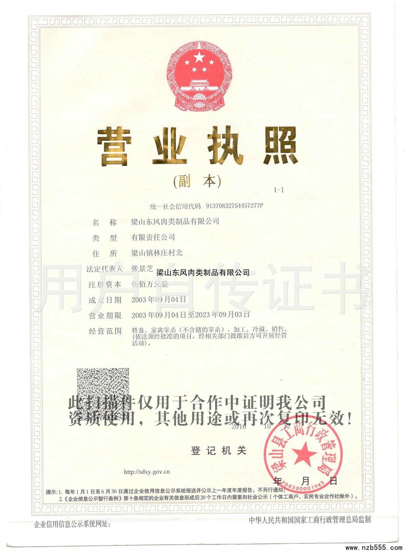 | 發(fā)證機(jī)構(gòu): | 梁山縣工商行政管理局 | 發(fā)證時(shí)間 : | 2016-10-12 |