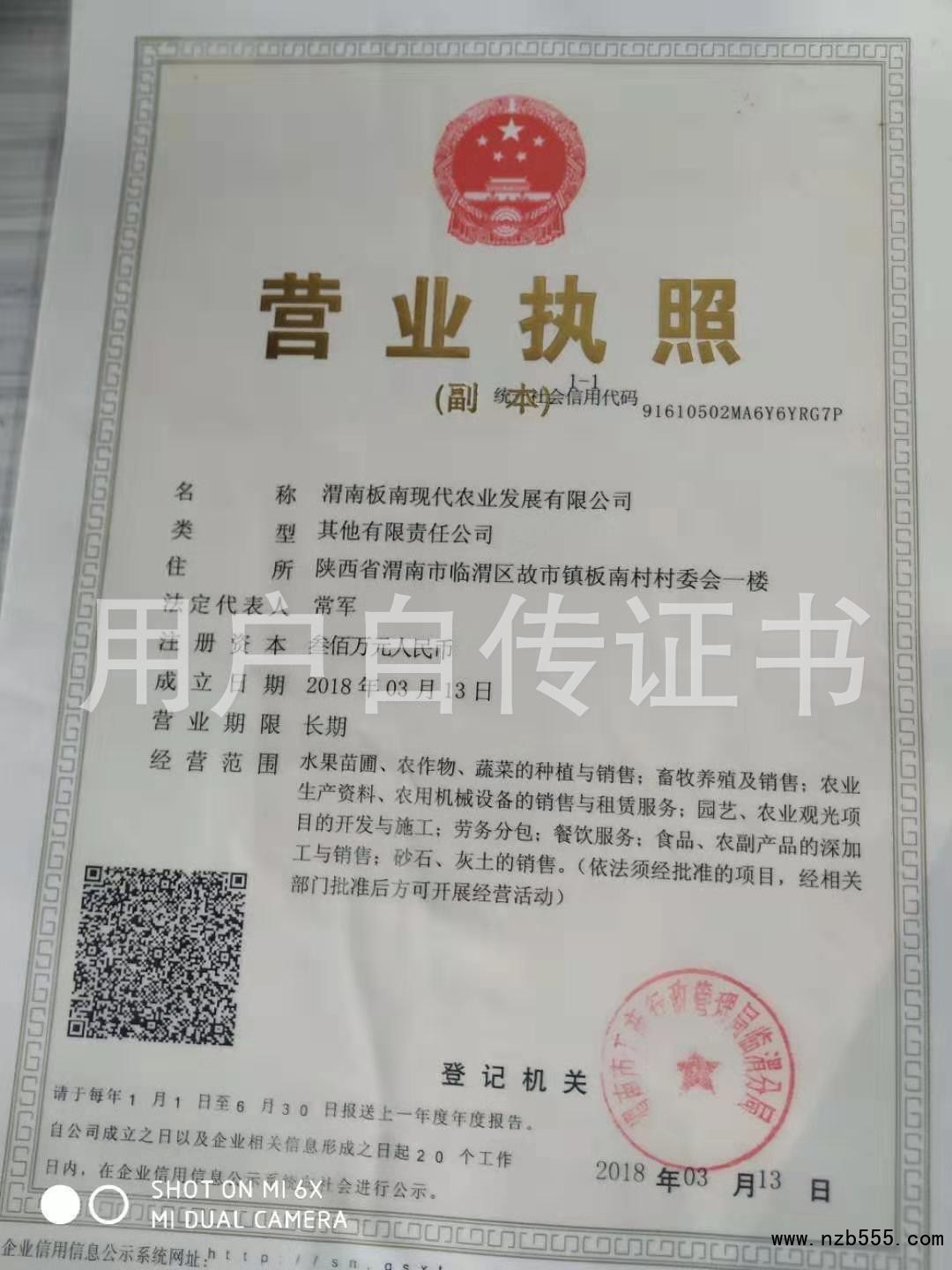 | 發(fā)證機(jī)構(gòu): | 渭南市工商行政管理局臨渭分局 | 發(fā)證時(shí)間 : | 2018-03-13 |