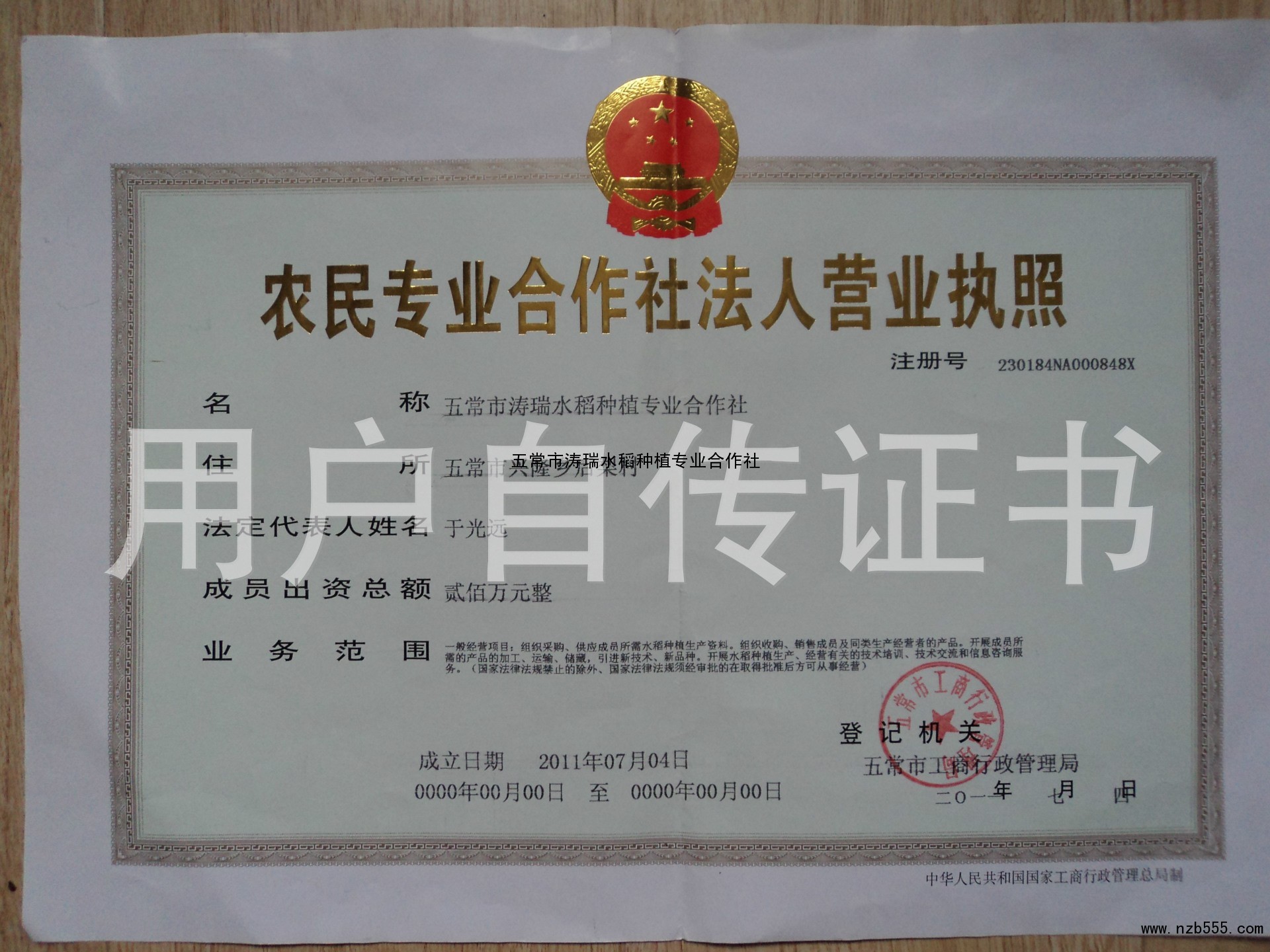| 發(fā)證機(jī)構(gòu): | 五常市工商行政管理局 | 發(fā)證時(shí)間 : | 2011-07-04 |