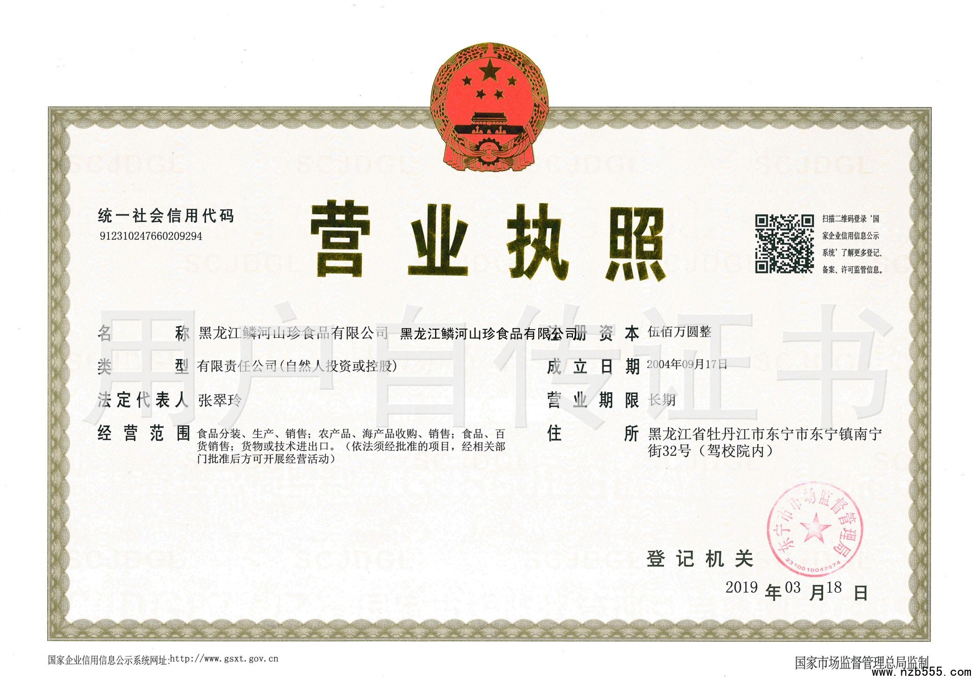 榮譽(yù)資質(zhì) 黑龍江鱗河山珍食品有限公司