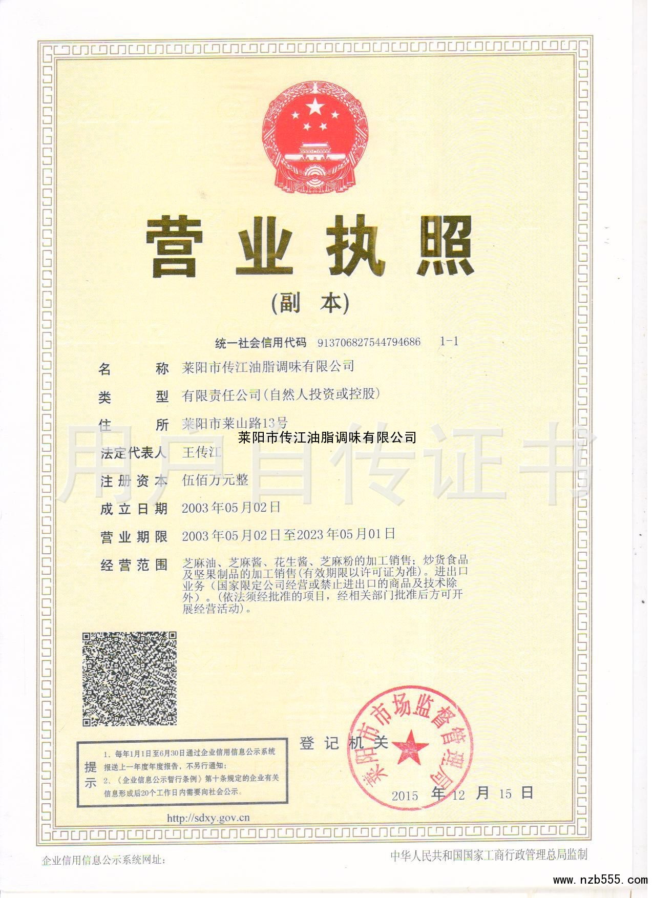 萊陽市傳江油脂調(diào)味有限公司