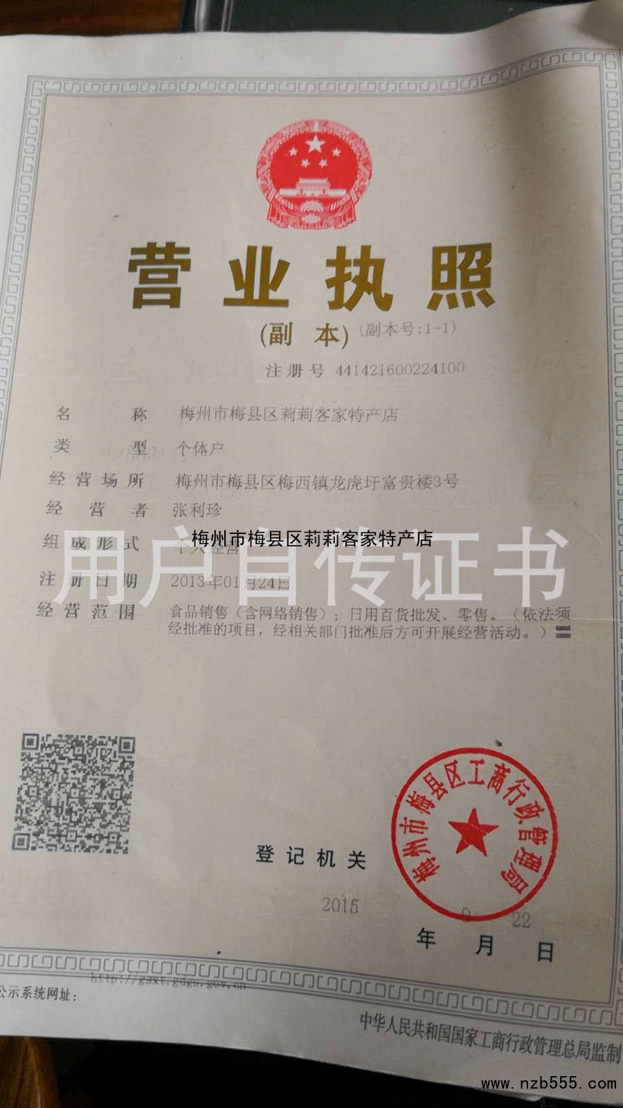 | 發(fā)證機(jī)構(gòu): | 梅州市梅縣區(qū)工商行政管理局 | 發(fā)證時(shí)間 : | 2015-09-22 |