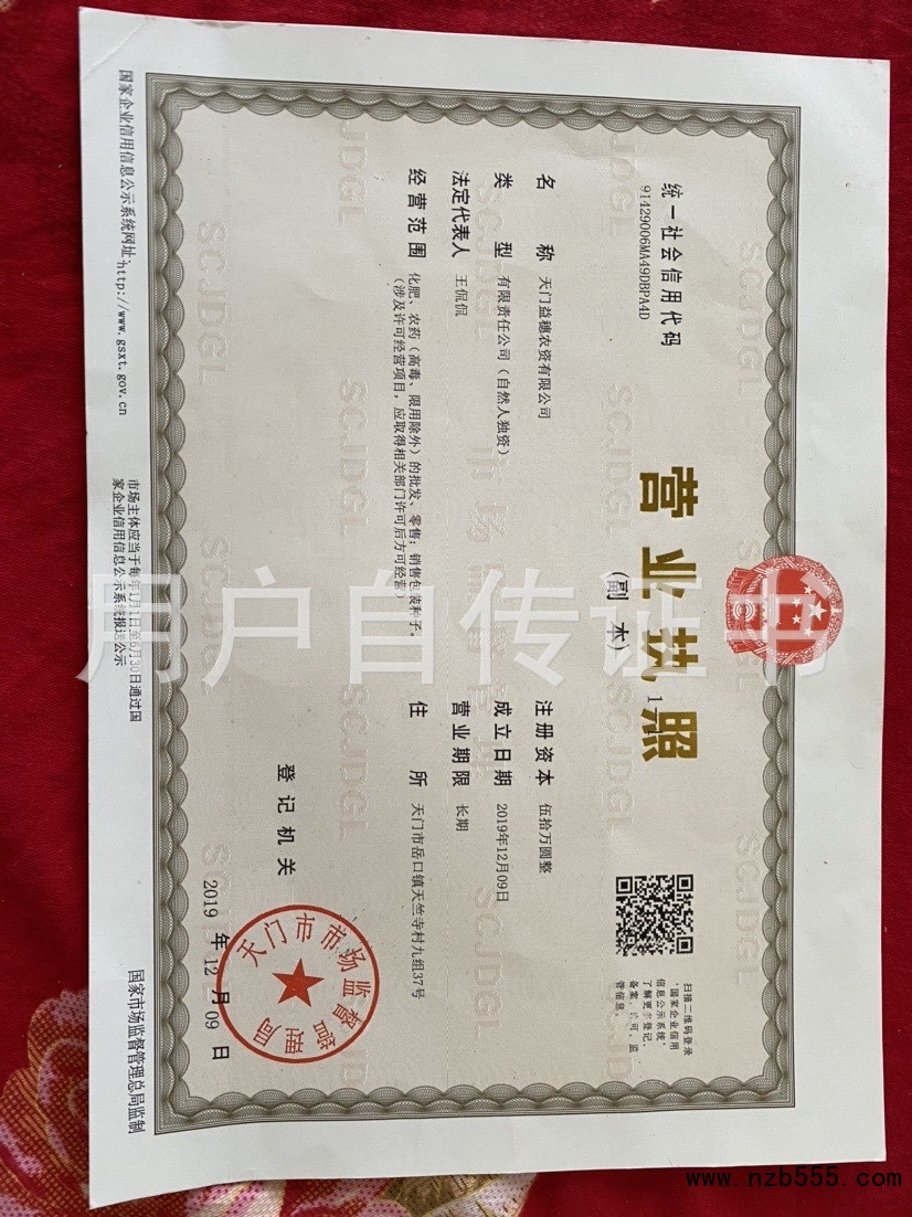 | 發(fā)證機(jī)構(gòu): | 天門山市場監(jiān)督管理局 | 發(fā)證時間 : | 2019-12-09 |