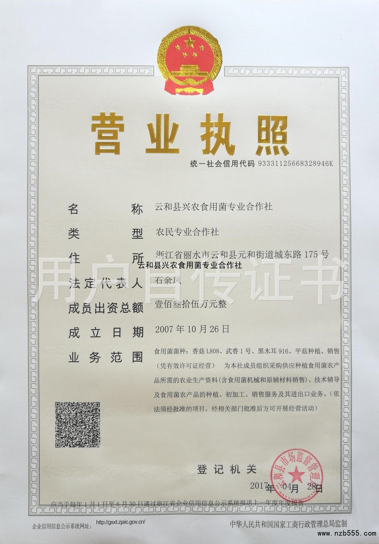 榮譽(yù)資質(zhì) 云和縣興農(nóng)食用菌專業(yè)合作社