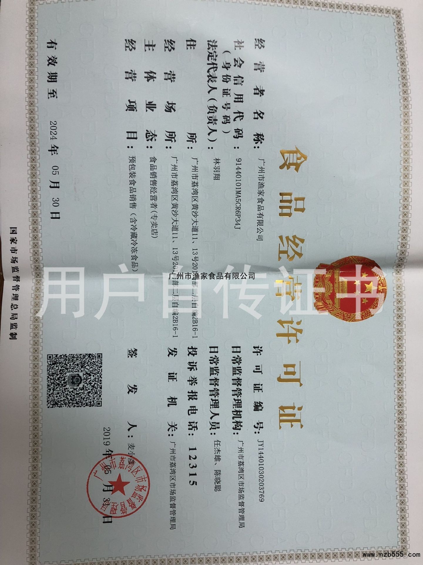 | 發(fā)證機(jī)構(gòu): | 廣州市荔灣區(qū)市場監(jiān)督管理局 | 發(fā)證時(shí)間 : | 2019-05-31 |