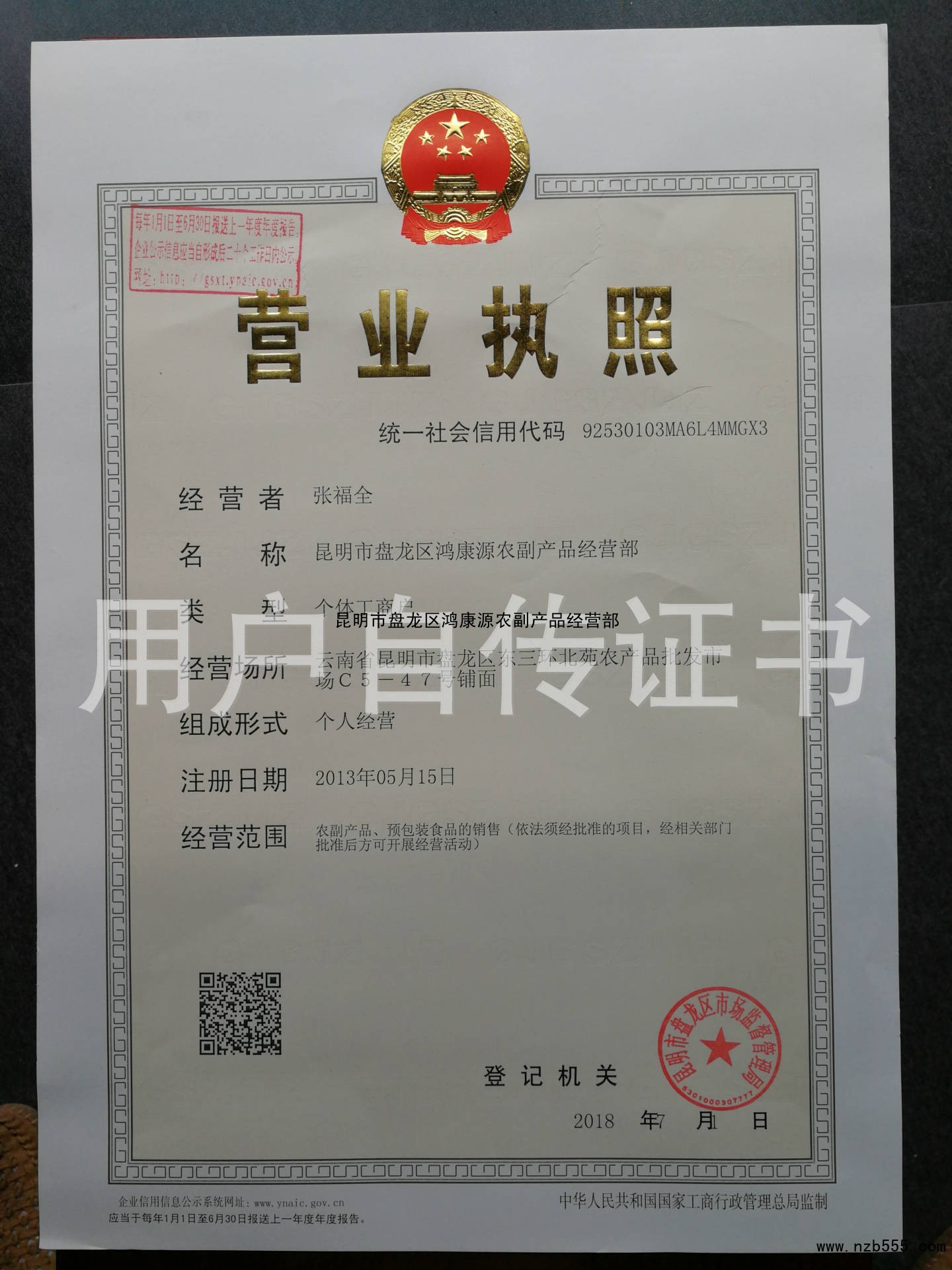 | 發(fā)證機(jī)構(gòu): | 昆明市盤龍區(qū)市場監(jiān)督管理局 | 發(fā)證時(shí)間 : | 2018-07-01 |