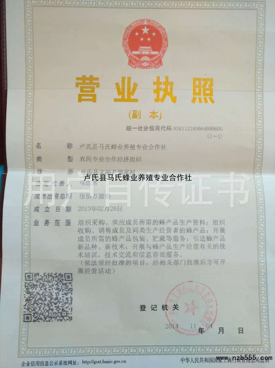 | 發(fā)證機(jī)構(gòu): | 盧氏縣工商行政和質(zhì)量技術(shù)管理局 | 發(fā)證時(shí)間 : | 2014-11-04 |