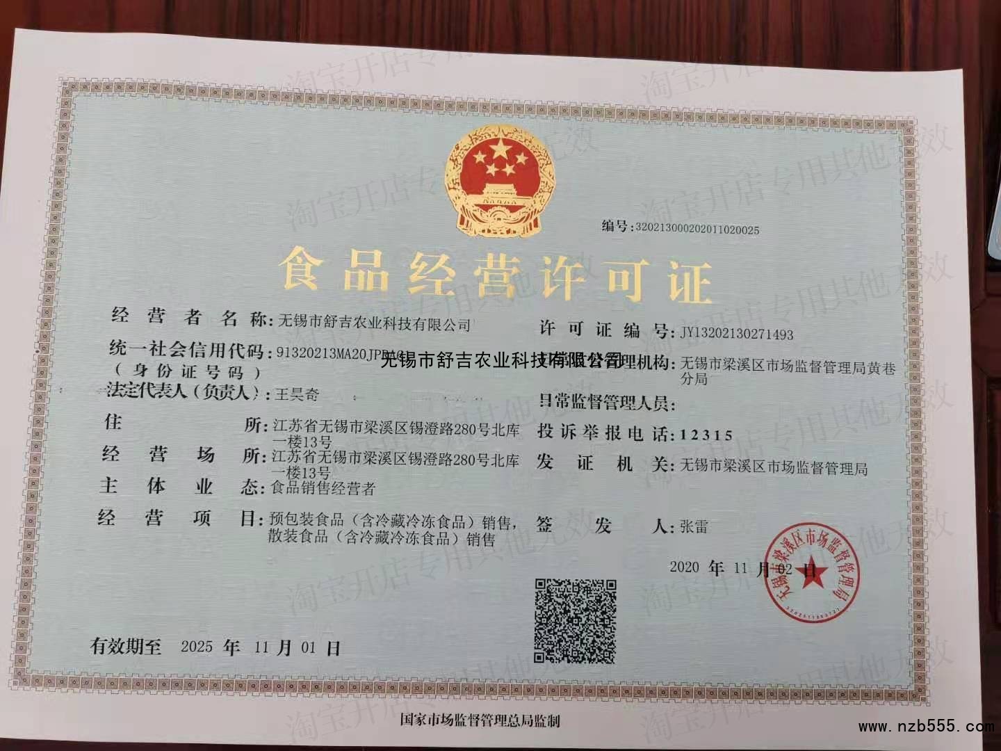 | 發(fā)證機(jī)構(gòu): | 無錫市梁溪區(qū)市場(chǎng)監(jiān)督管理局 | 發(fā)證時(shí)間 : | 2020-11-02 |