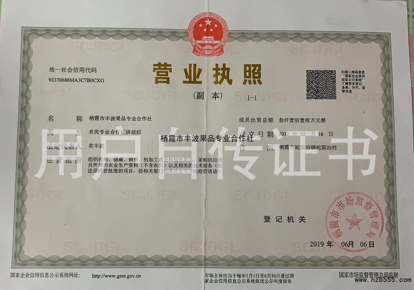榮譽(yù)資質(zhì) 棲霞市豐波果品專業(yè)合作社