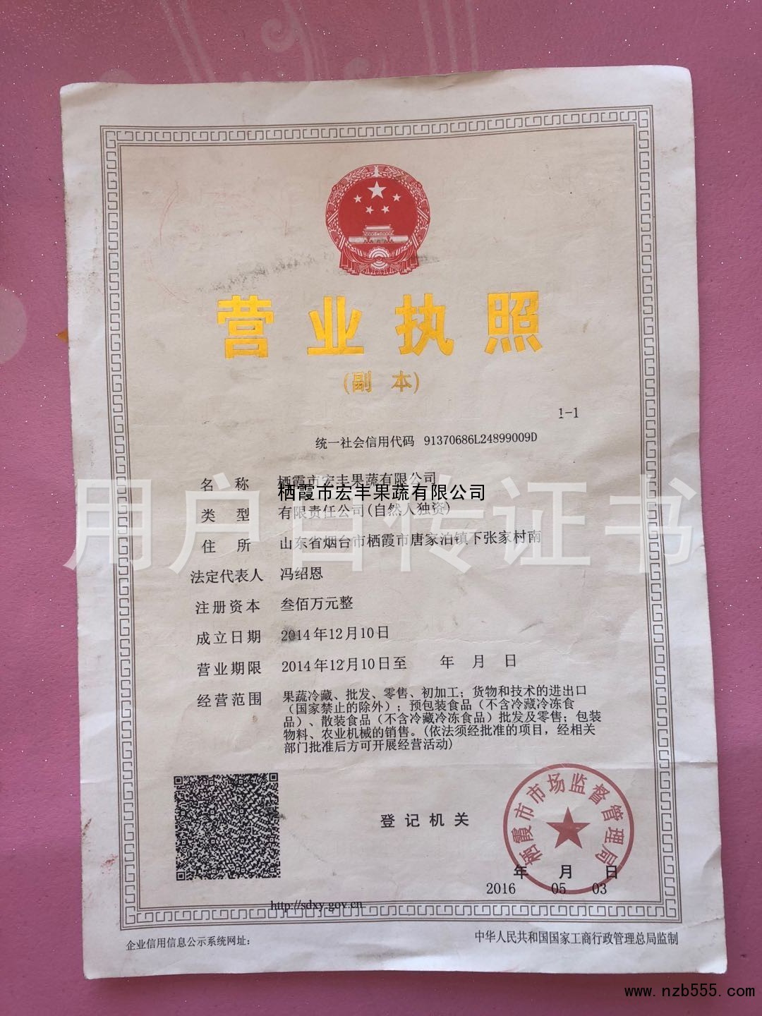 | 發(fā)證機(jī)構(gòu): | 棲霞市市場監(jiān)督管理局 | 發(fā)證時間 : | 2016-05-03 |