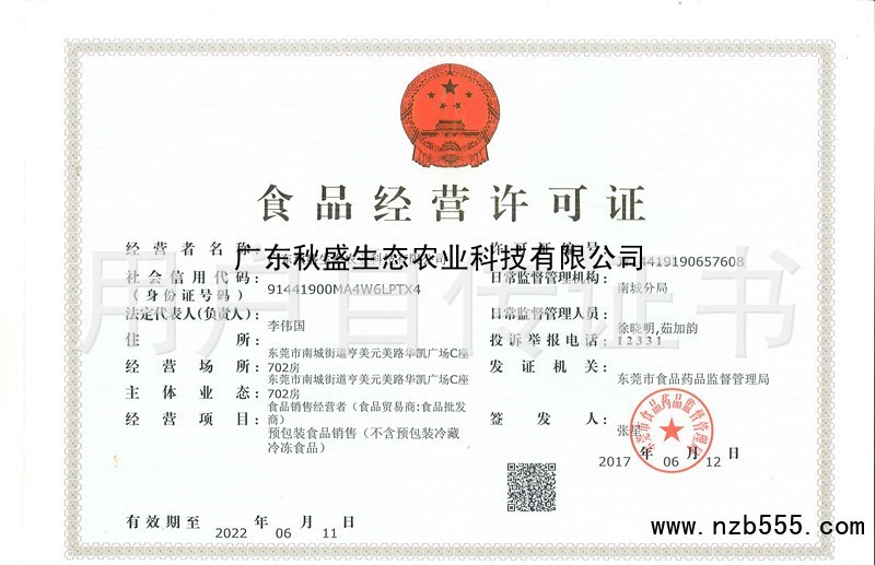 食品經(jīng)營許可證(除乳制品、嬰幼兒配方乳粉、酒之外的生產(chǎn)許可證)