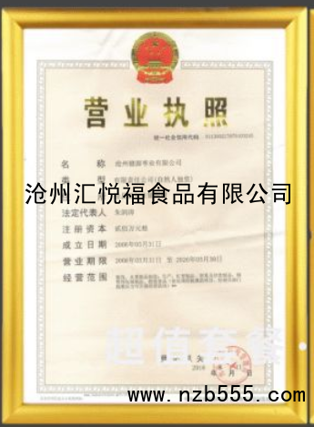 首頁 > 榮譽(yù)資質(zhì) > 滄州匯悅福食品有限公司