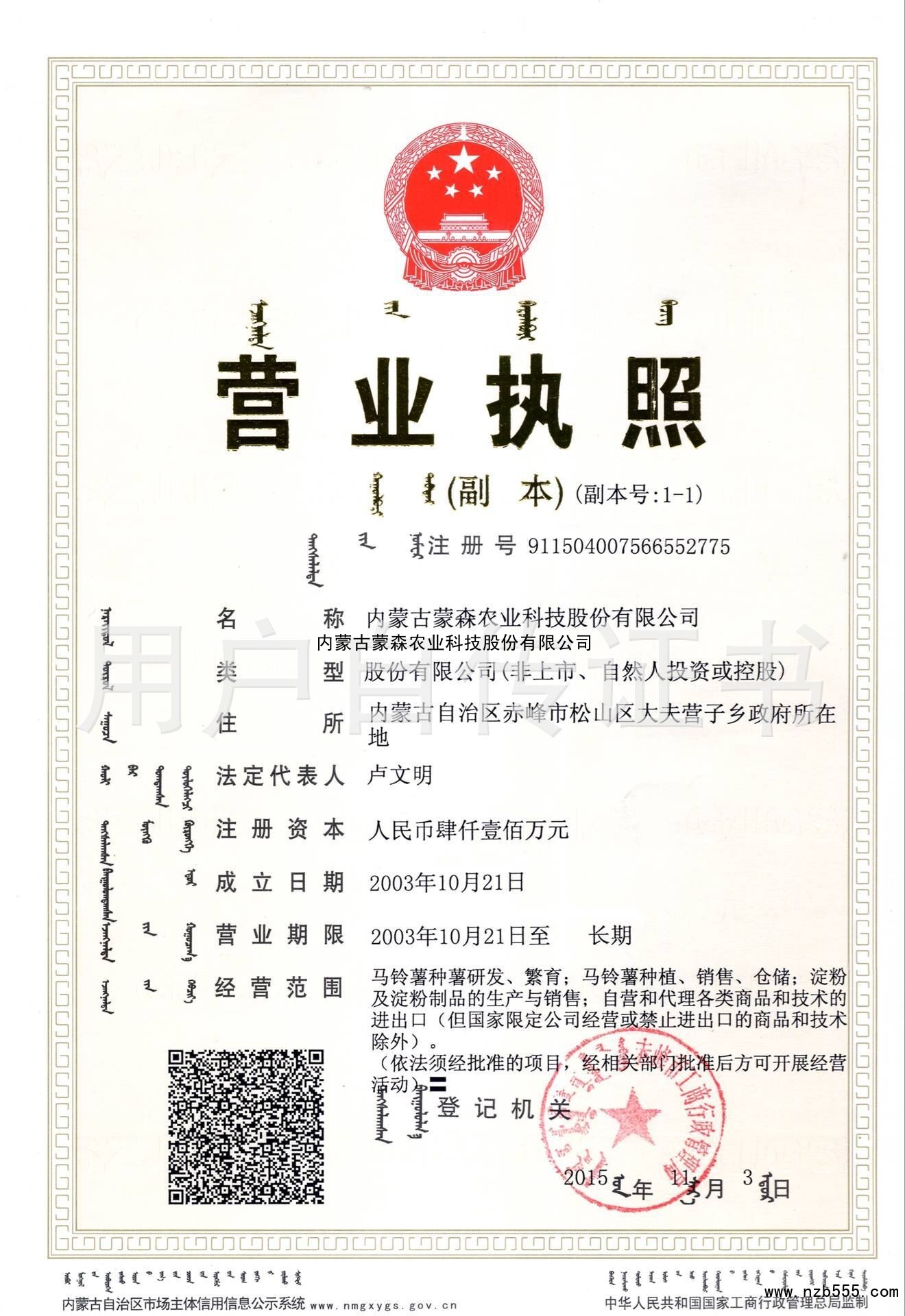 | 發(fā)證機(jī)構(gòu): | 赤峰市工商行政管理局 | 發(fā)證時(shí)間 : | 2015-11-03 |