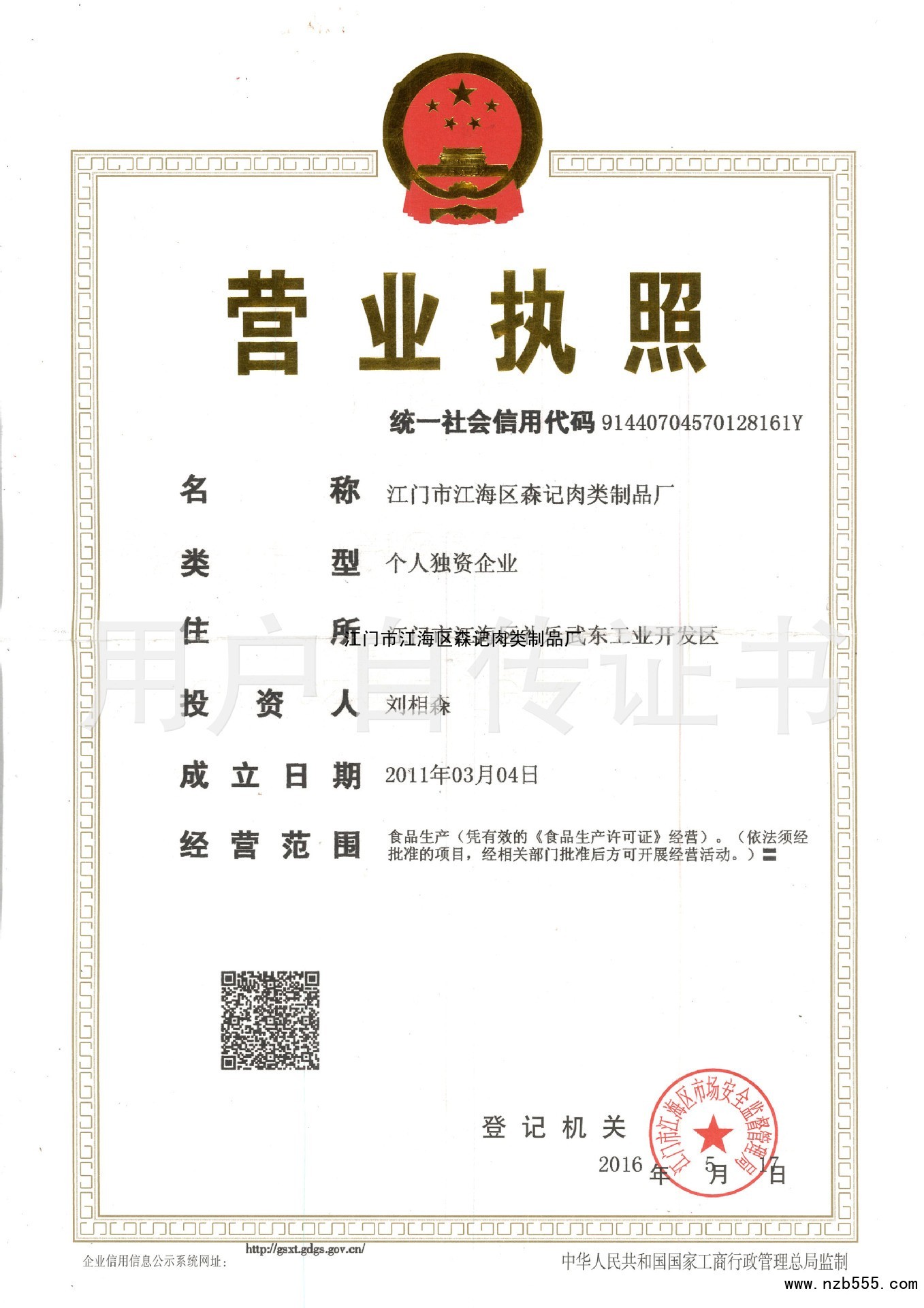 首頁 > 榮譽(yù)資質(zhì) > 江門市江海區(qū)森記肉類制品