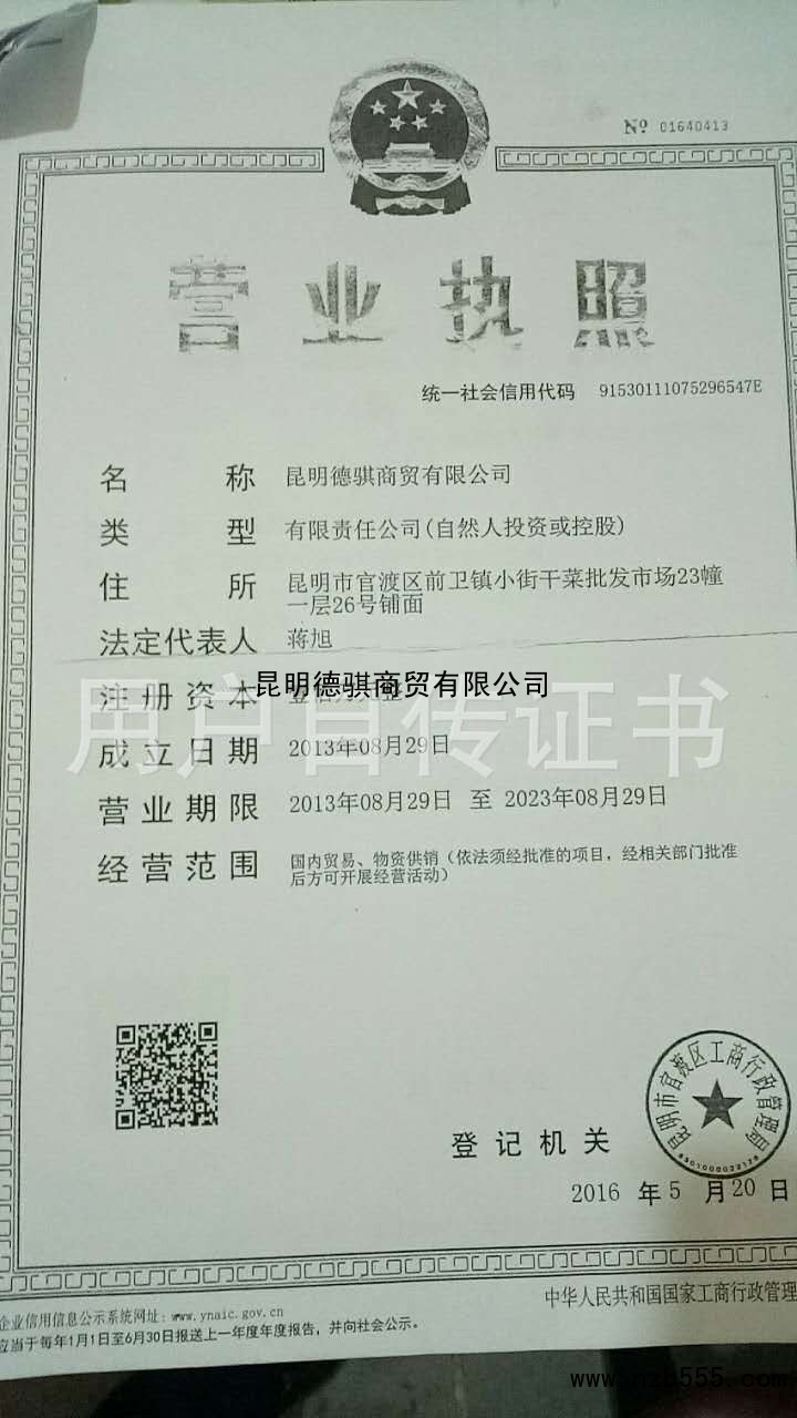 | 發(fā)證機(jī)構(gòu): | 昆明市官渡區(qū)工商行政管理局 | 發(fā)證時(shí)間 : | 2016-05-20 |