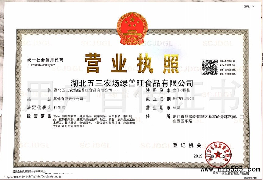 湖北五三農(nóng)場綠普旺食品有限公司