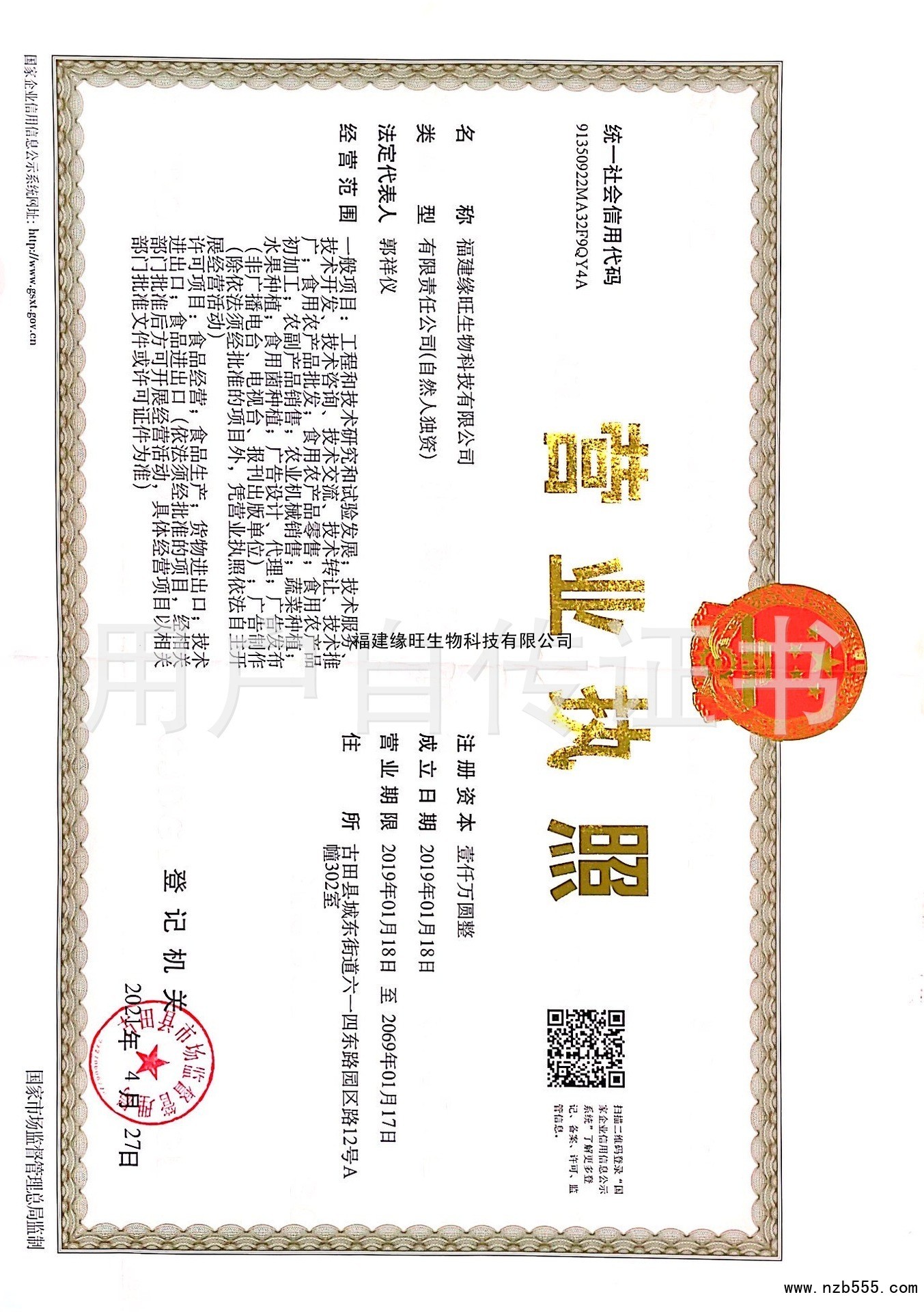 榮譽(yù)資質(zhì) 福建緣旺生物科技有限公司