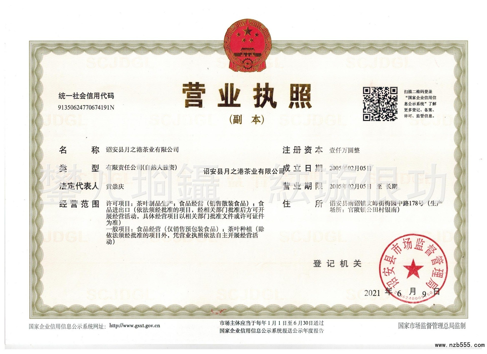 首頁 > 榮譽(yù)資質(zhì) > 詔安縣月之港茶業(yè)有限公司