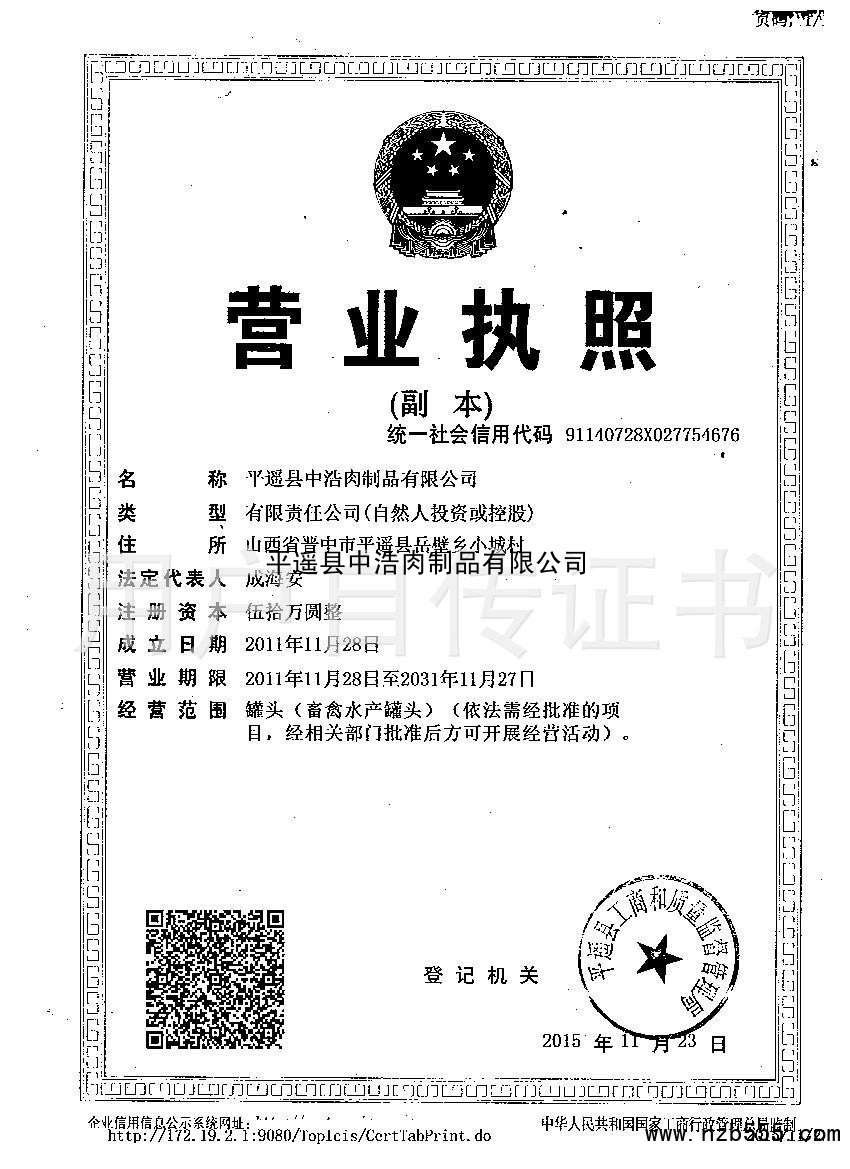 | 發(fā)證機(jī)構(gòu): | 平遙縣工商和質(zhì)量監(jiān)督管理局 | 發(fā)證時(shí)間 : | 2015-11-23 |