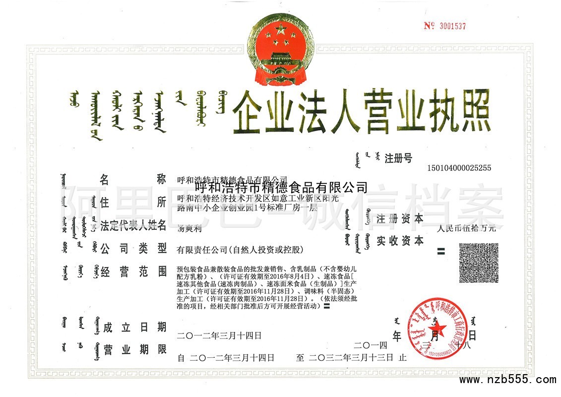 | 發(fā)證機(jī)構(gòu): | 呼和浩特市工商行政管理局 | 發(fā)證時(shí)間 : | 2014-03-18 |