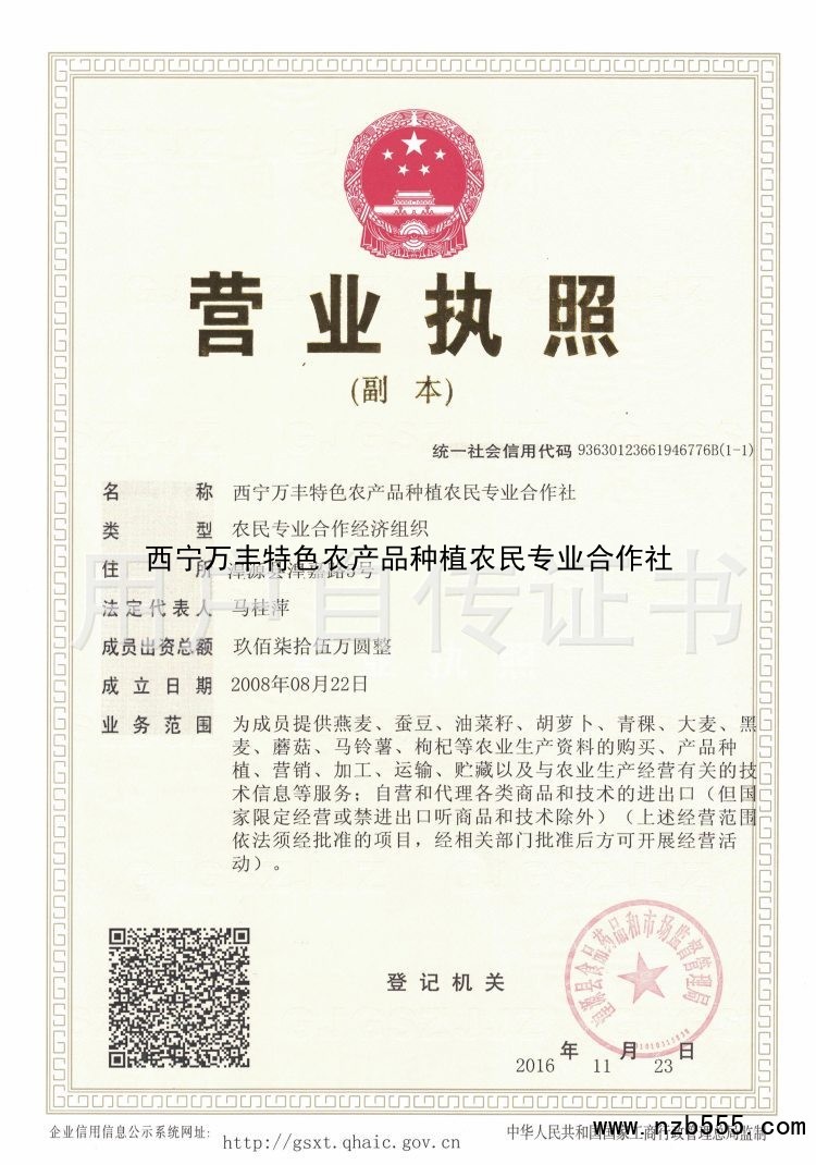 | 發(fā)證機(jī)構(gòu): | 湟源縣食品藥品和市場(chǎng)監(jiān)督管理局 | 發(fā)證時(shí)間 : | 2016-11-23 |
