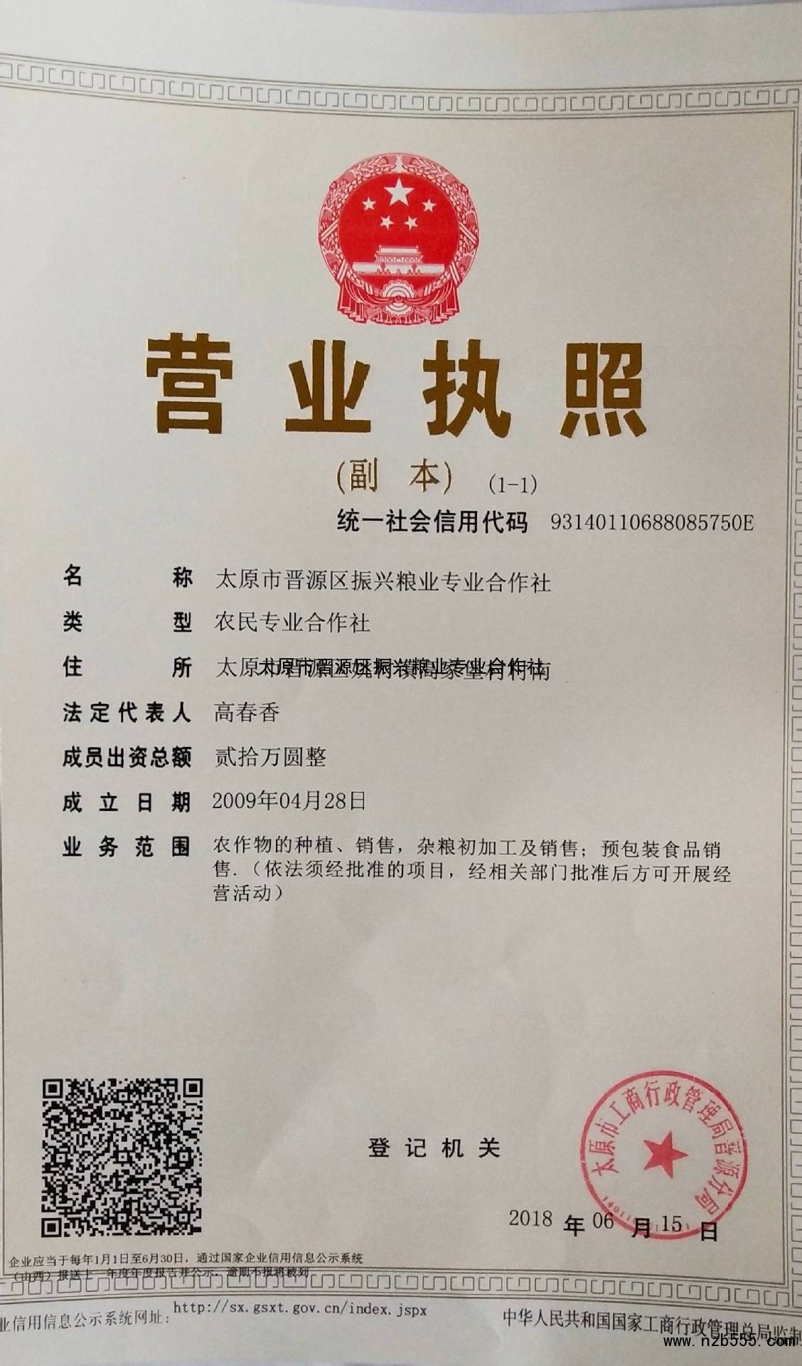 | 發(fā)證機(jī)構(gòu): | 太原市工商行政管理局晉源分局 | 發(fā)證時(shí)間 : | 2018-06-15 |