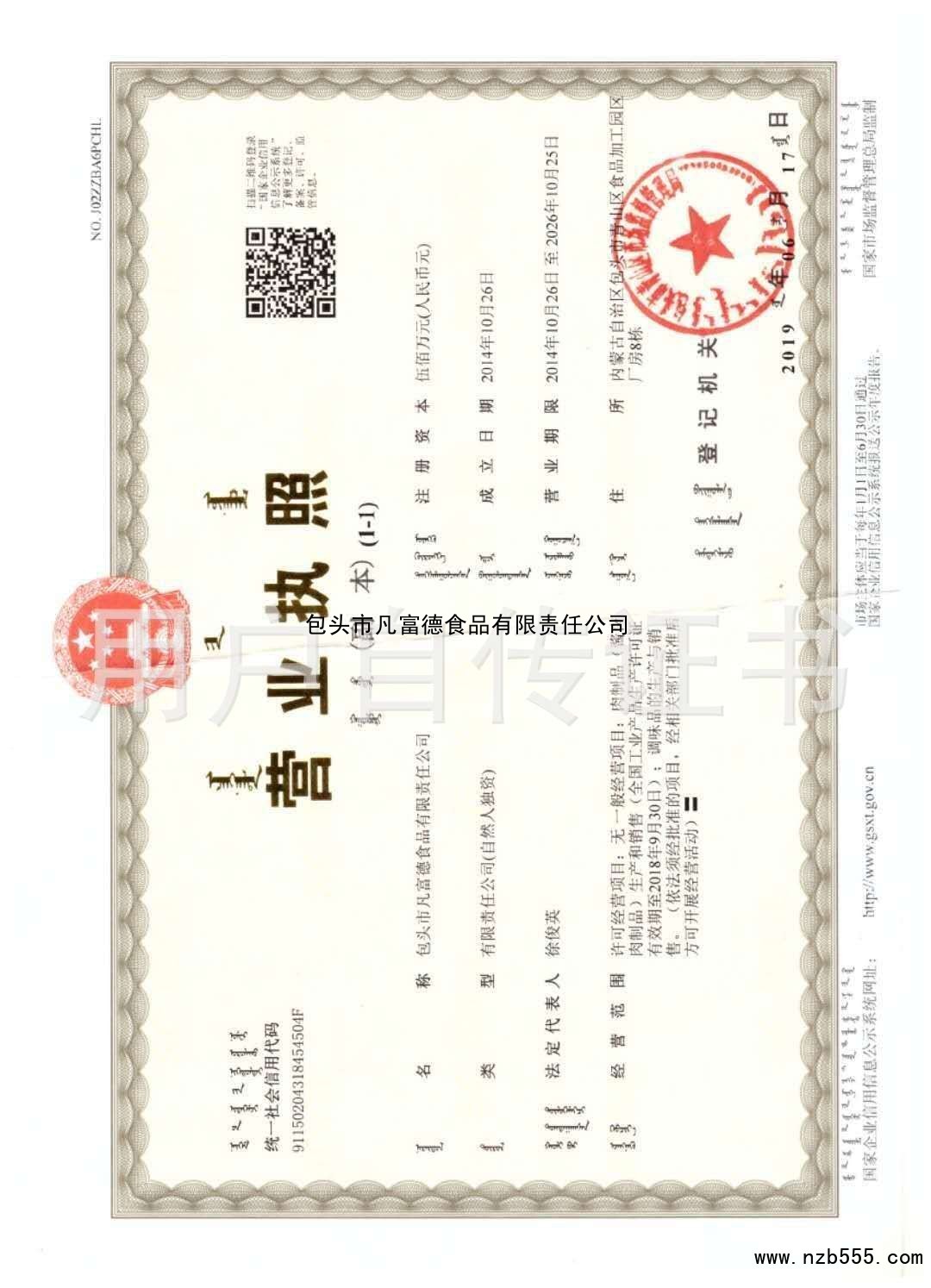 | 發(fā)證機(jī)構(gòu): | 包頭市青山區(qū)市場(chǎng)監(jiān)督管理局 | 發(fā)證時(shí)間 : | 2019-06-17 |