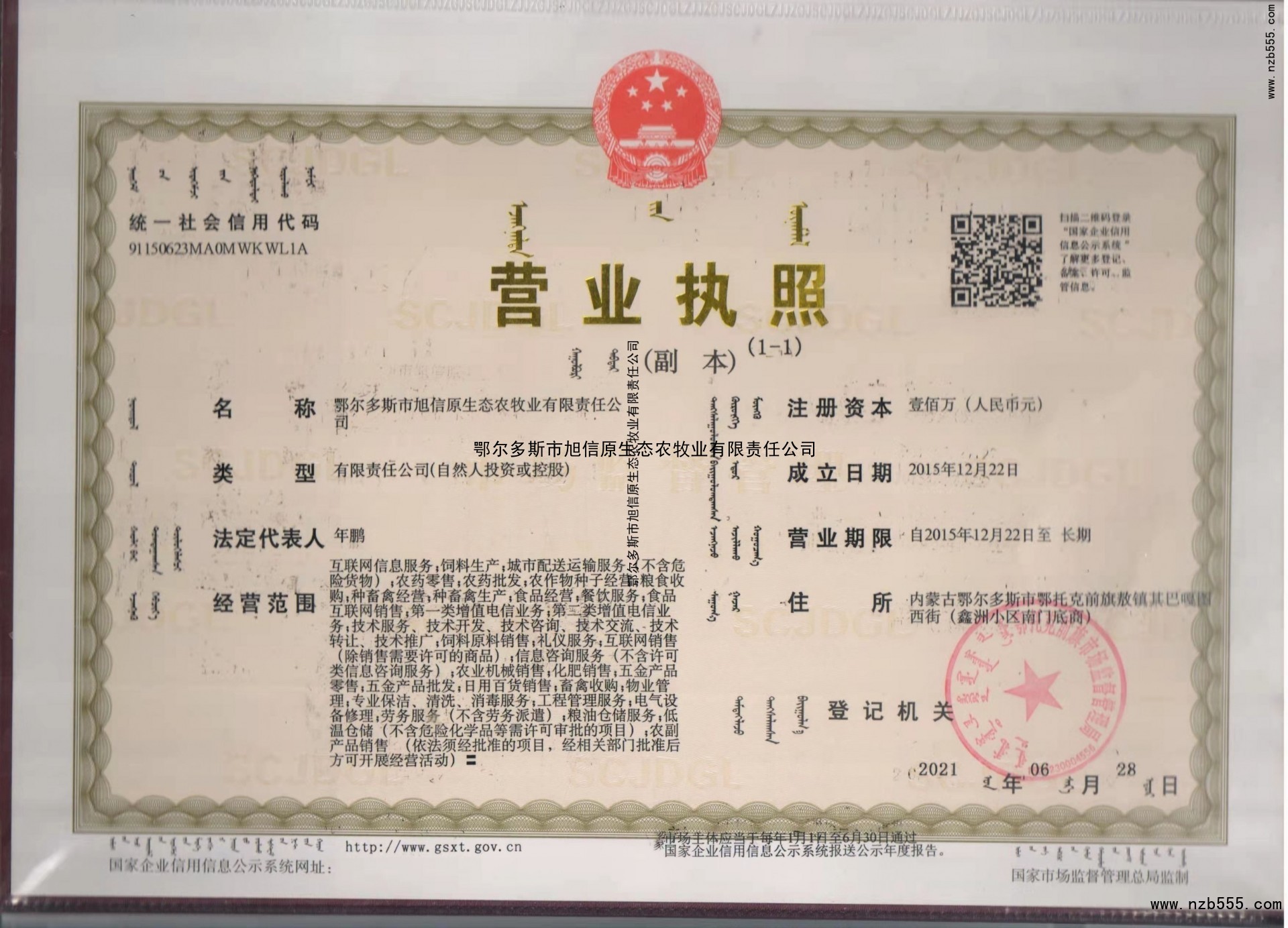 榮譽(yù)資質(zhì) 鄂爾多斯市旭信原生態(tài)農(nóng)牧業(yè)有限責(zé)任公司