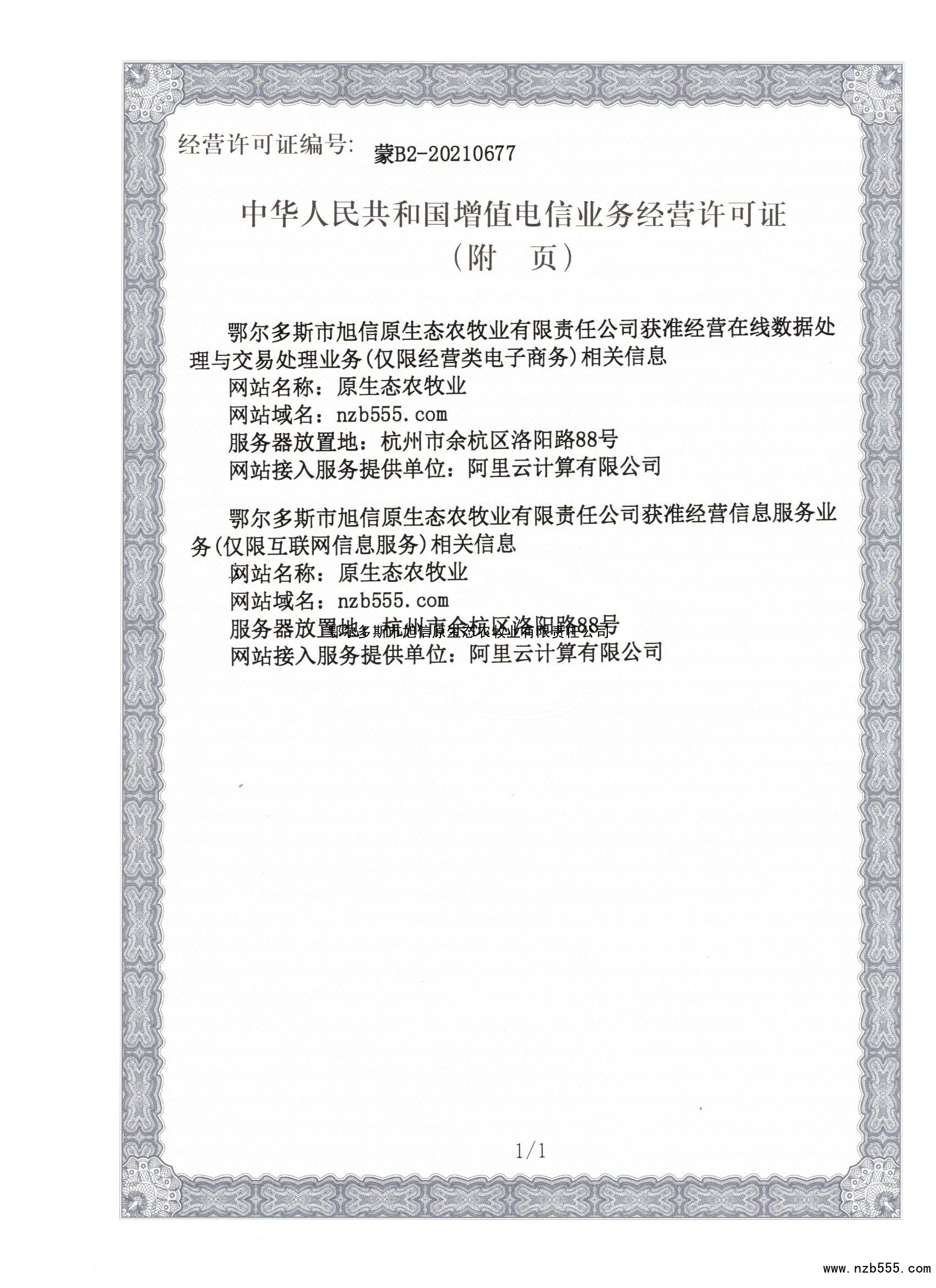 中華人民共和國增值電信業(yè)務經營許可證(附頁)