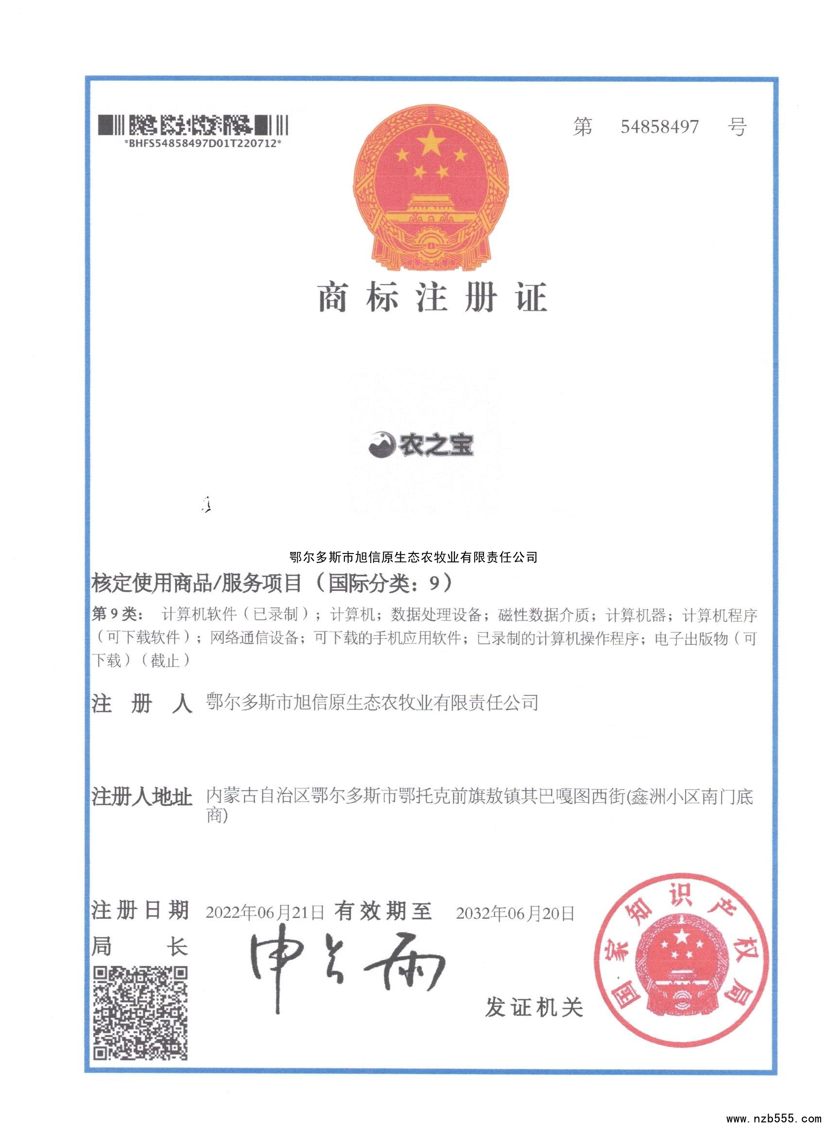商標注冊證 農之寶 第9類