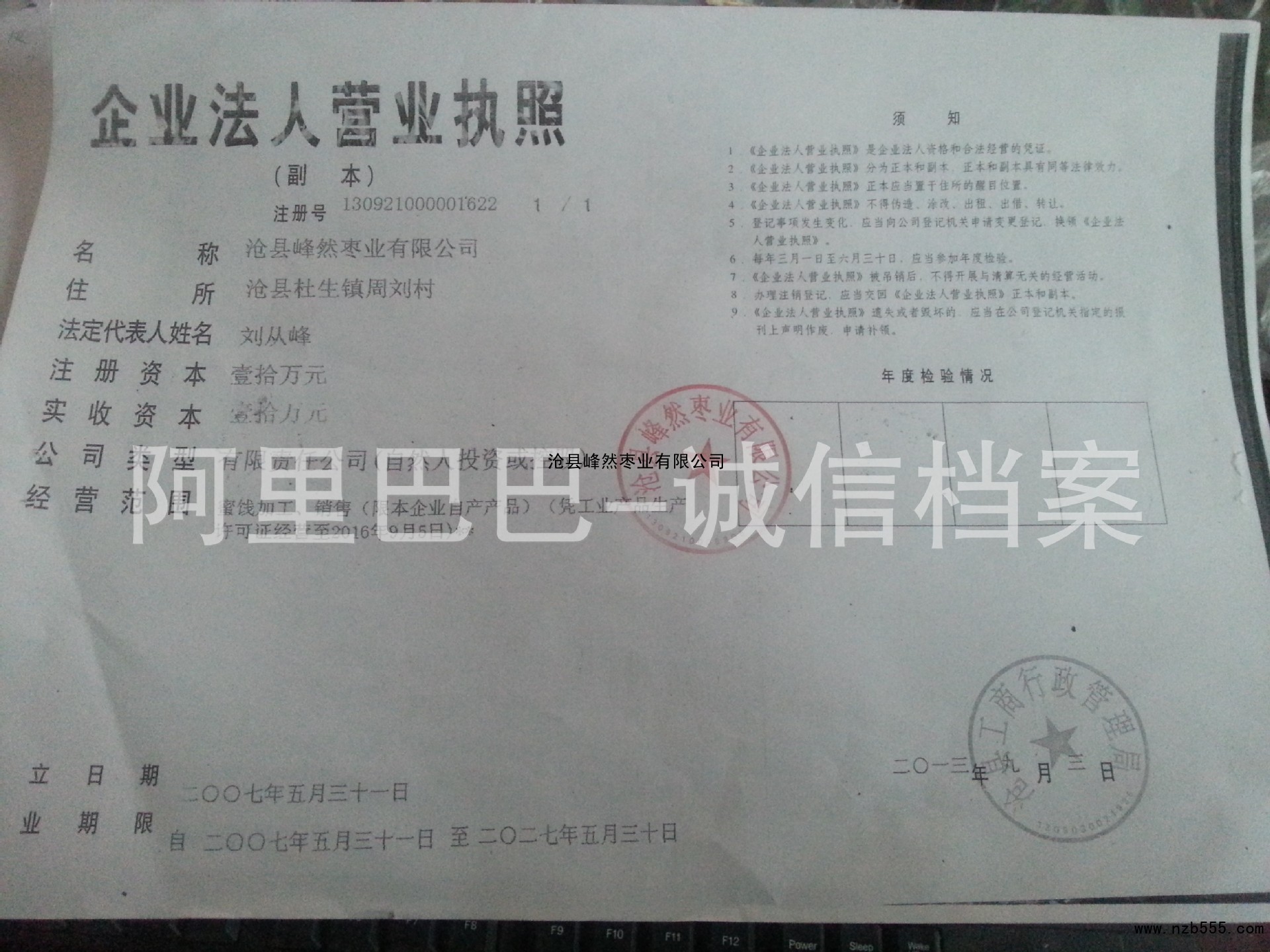 榮譽(yù)資質(zhì) 滄縣峰然棗業(yè)有限公司