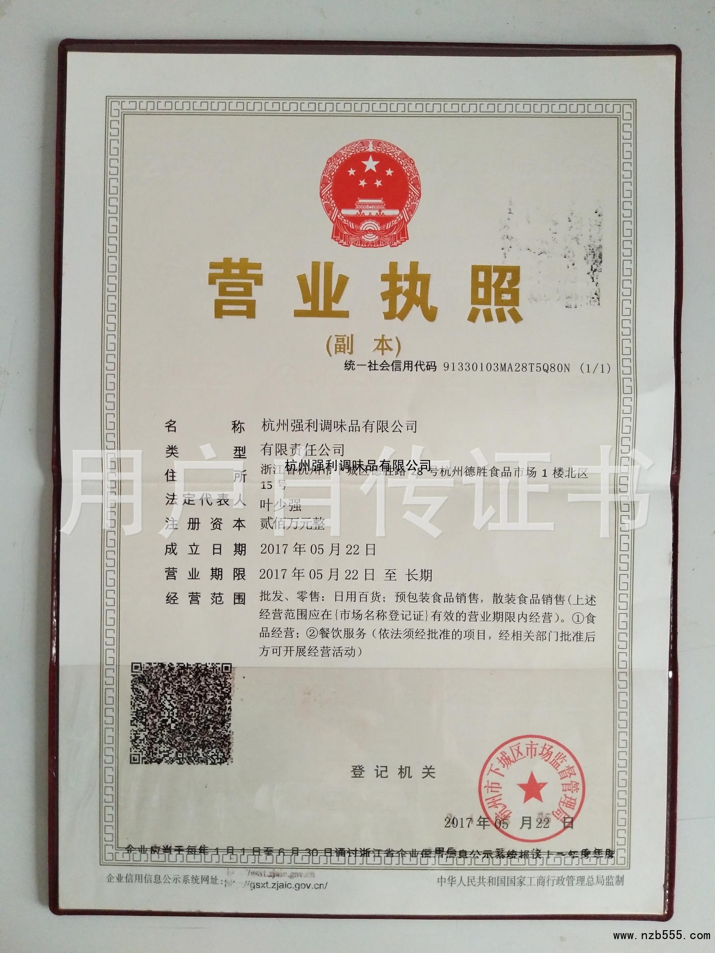 | 發(fā)證機(jī)構(gòu): | 杭州市下城區(qū)市場(chǎng)監(jiān)督管理局 | 發(fā)證時(shí)間 : | 2017-05-22 |