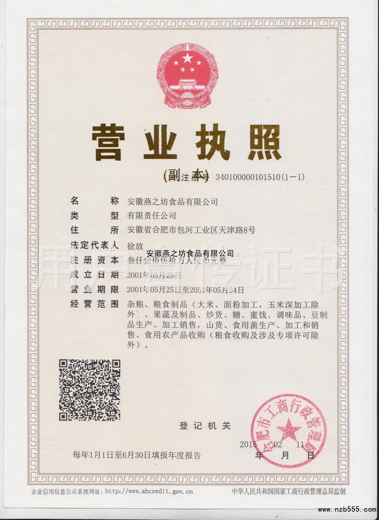 | 發(fā)證機(jī)構(gòu): | 合肥市工商行政管理局 | 發(fā)證時(shí)間 : | 2015-02-11 |