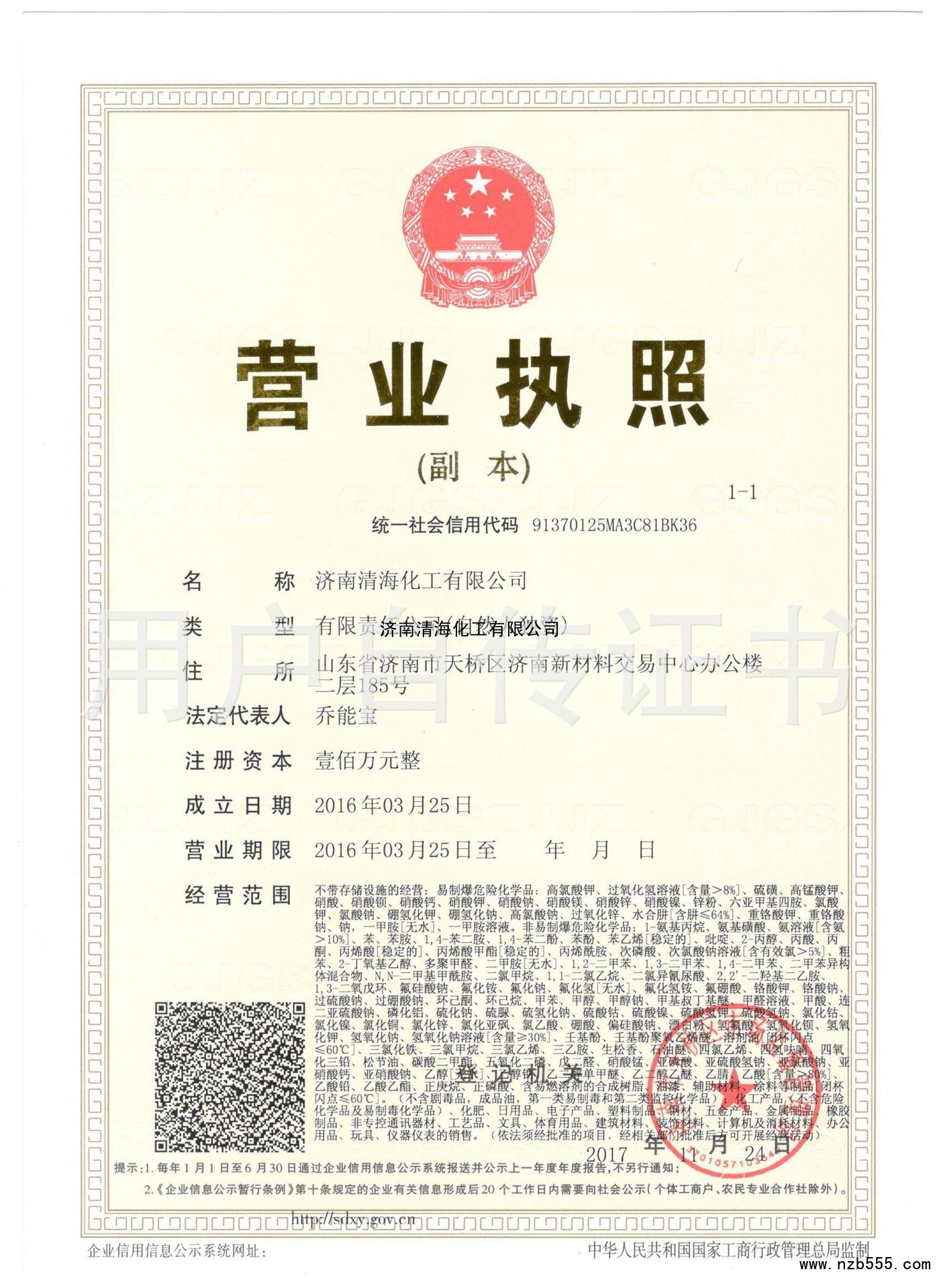首頁 > 榮譽(yù)資質(zhì) > 濟(jì)南清海化工有限公司