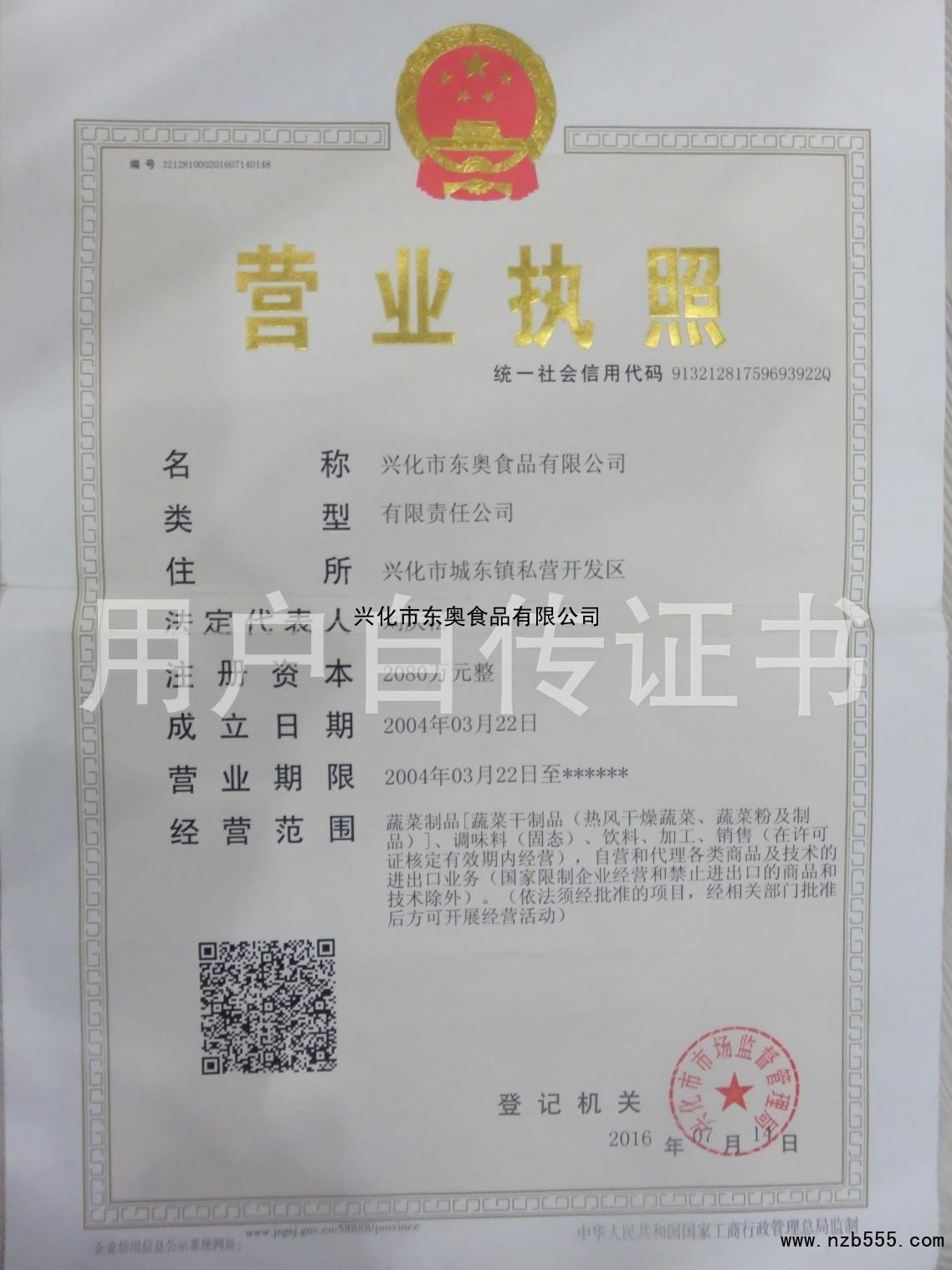 | 發(fā)證機(jī)構(gòu): | 興化市市場監(jiān)督管理局 | 發(fā)證時(shí)間 : | 2016-07-14 |