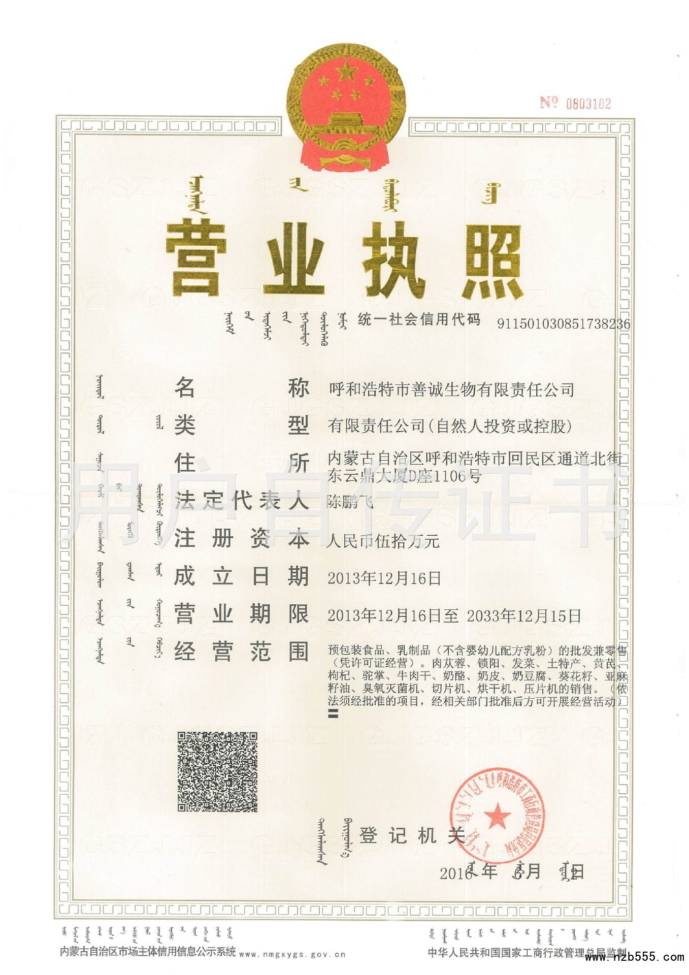 | 發(fā)證機(jī)構(gòu): | 呼和浩特市工商行政管理局回民區(qū)分局 | 發(fā)證時(shí)間 : | 2016-06-02 |