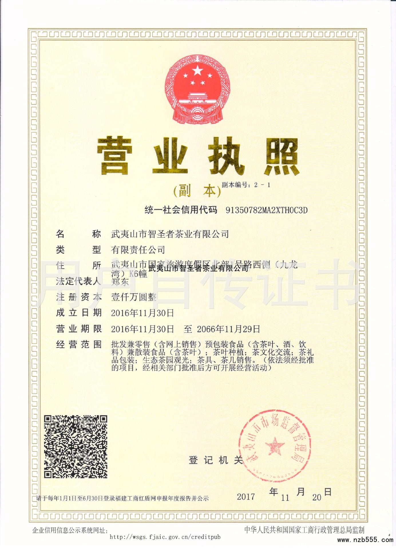 | 發(fā)證機(jī)構(gòu): | 武夷山市市場(chǎng)監(jiān)督管理局 | 發(fā)證時(shí)間 : | 2017-11-20 |