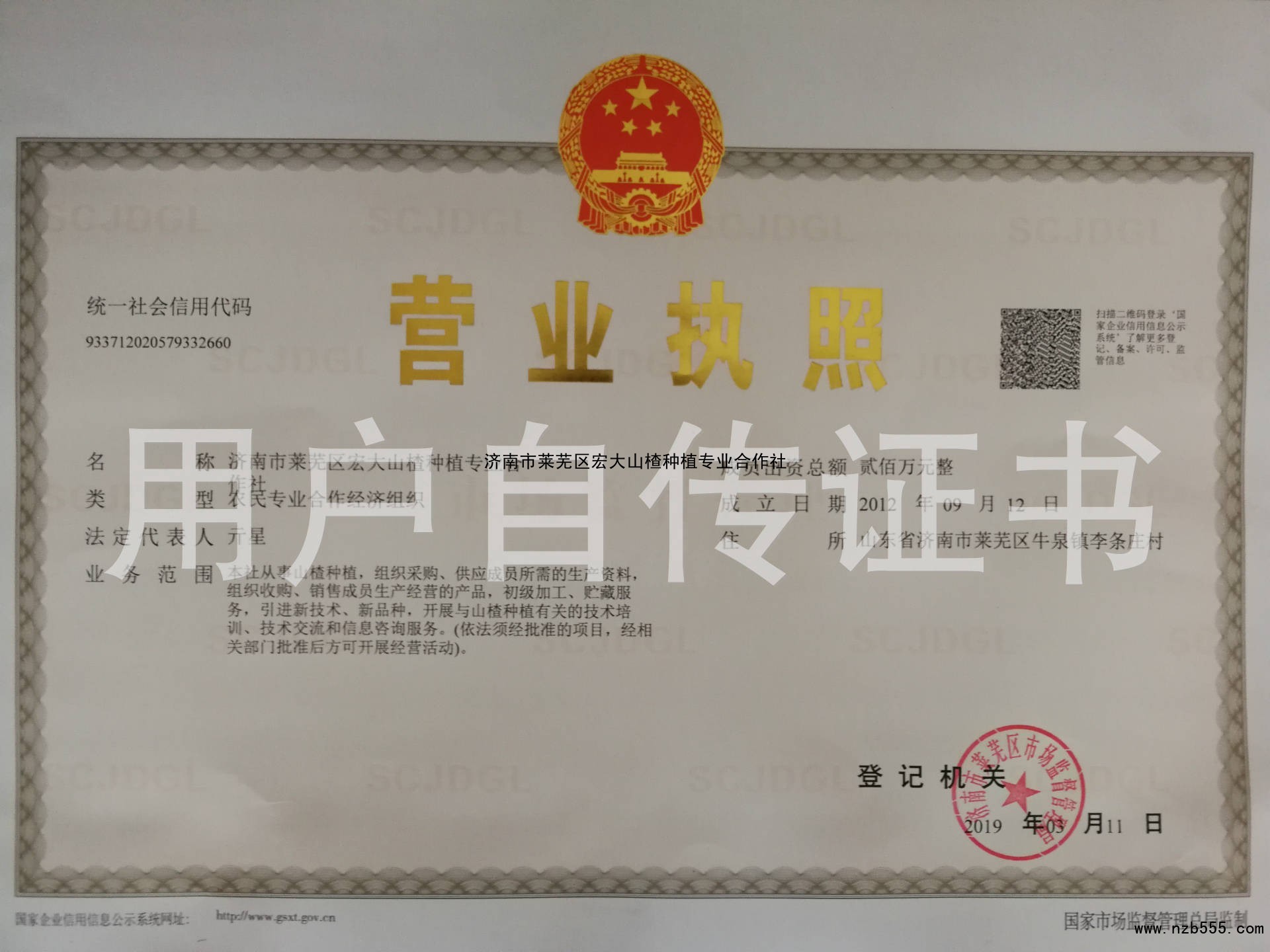 | 發(fā)證機(jī)構(gòu): | 濟(jì)南市萊蕪區(qū)市場(chǎng)監(jiān)督管理局 | 發(fā)證時(shí)間 : | 2019-03-11 |
