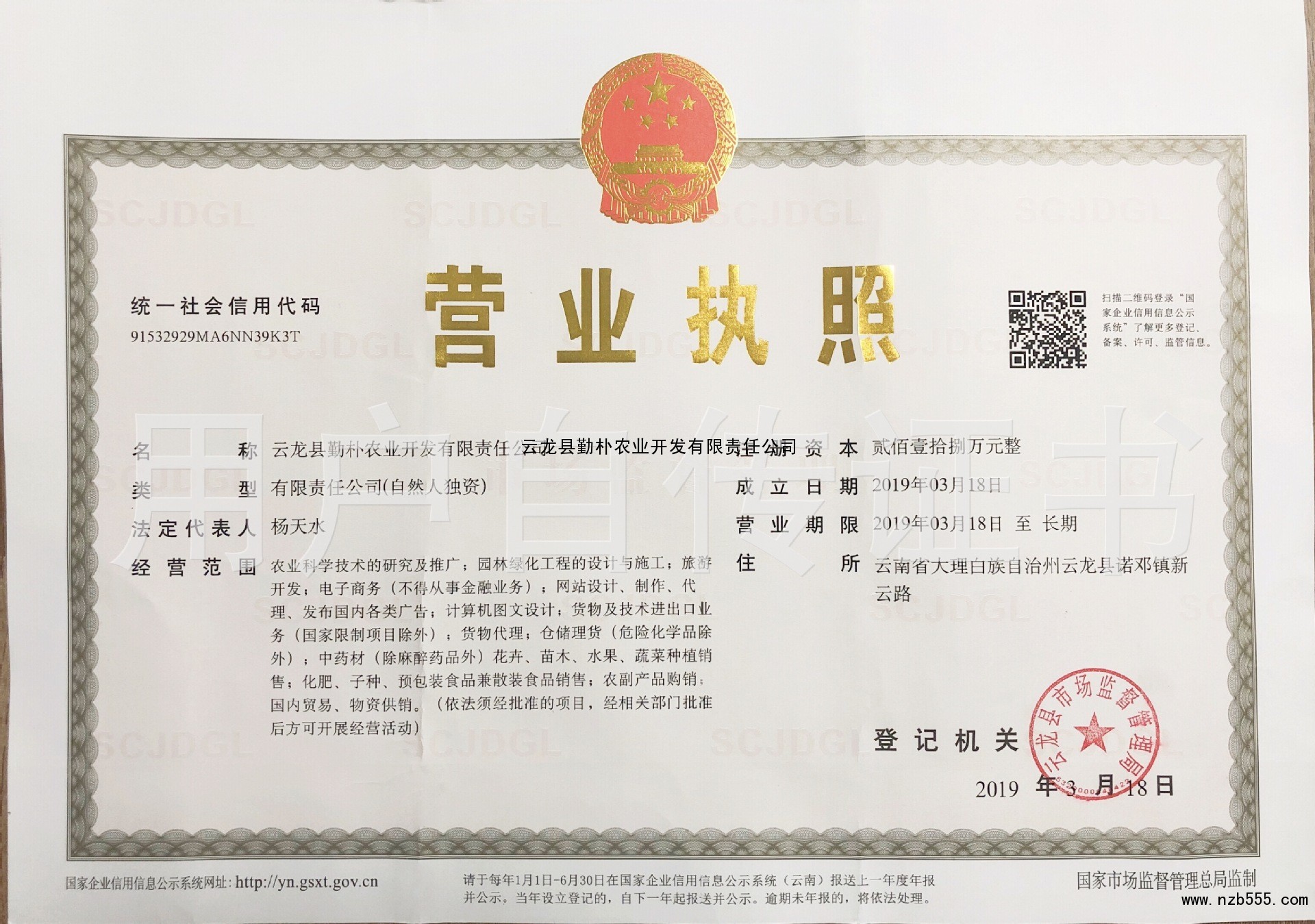 | 發(fā)證機(jī)構(gòu): | 云龍縣市場(chǎng)監(jiān)督管理局 | 發(fā)證時(shí)間 : | 2019-03-18 |