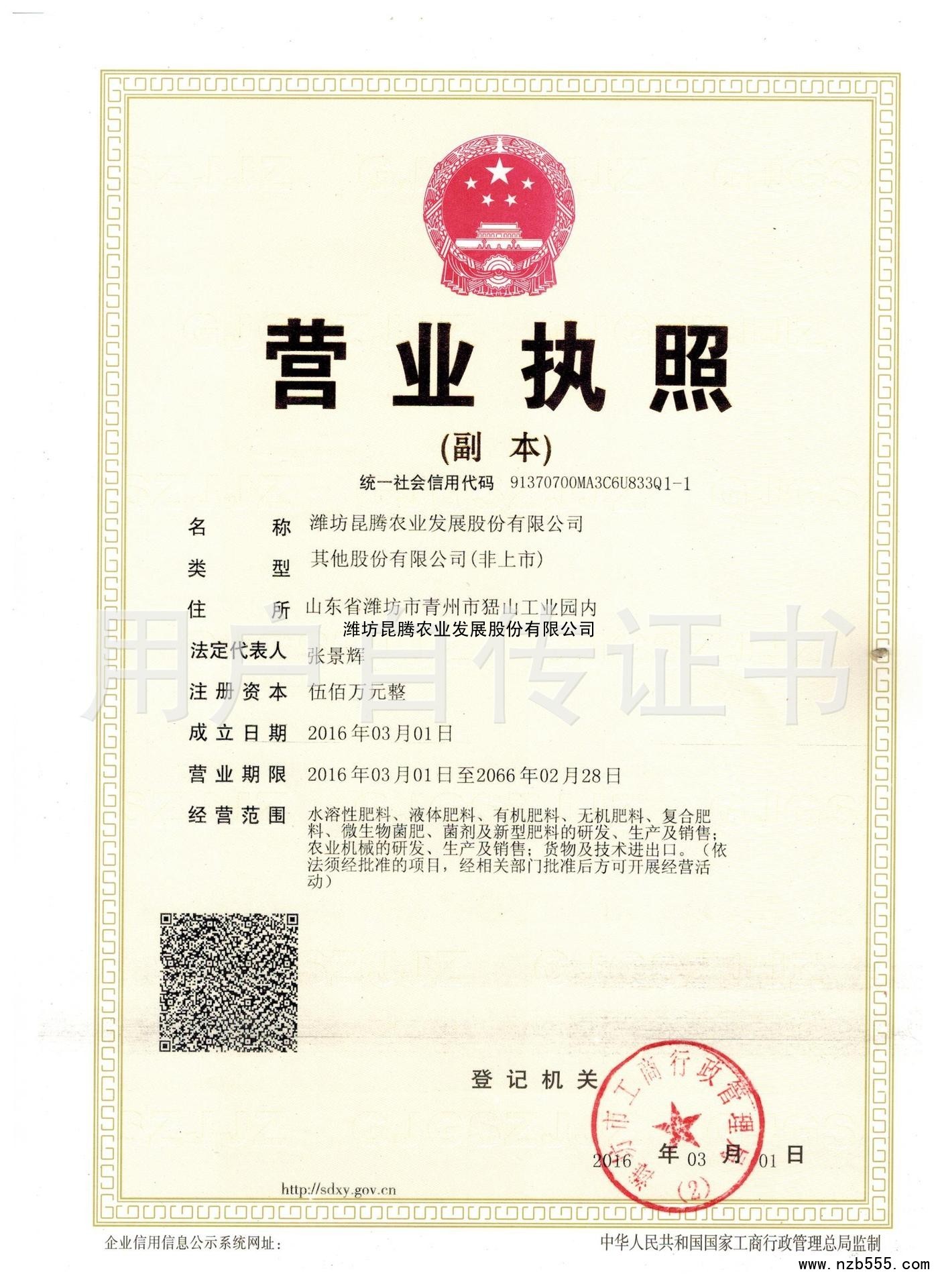 首頁 > 榮譽(yù)資質(zhì) > 濰坊昆騰農(nóng)業(yè)發(fā)展股份有限公司
