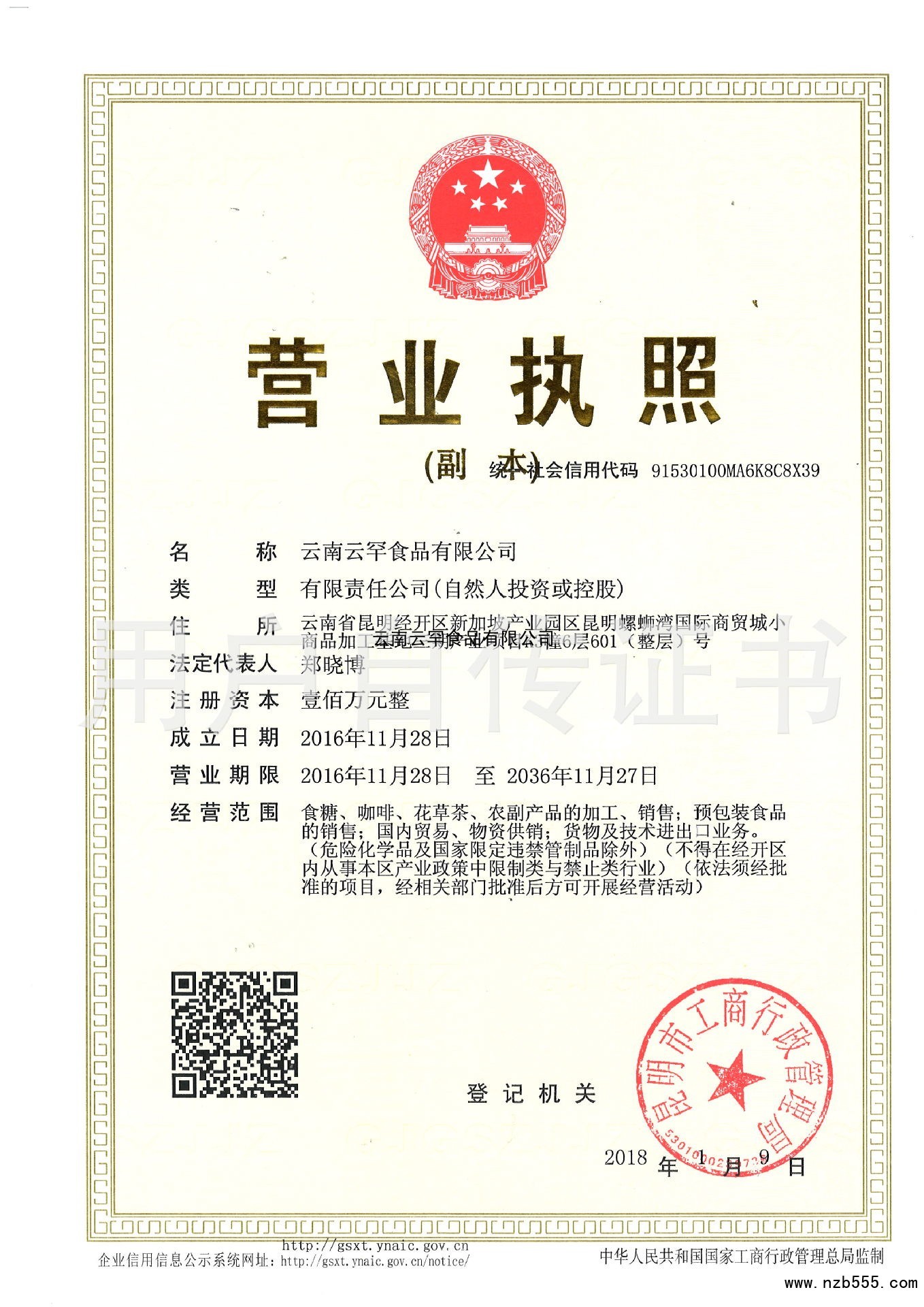 | 發(fā)證機(jī)構(gòu): | 工商行政管理局 | 發(fā)證時(shí)間 : | 2018-01-09 |