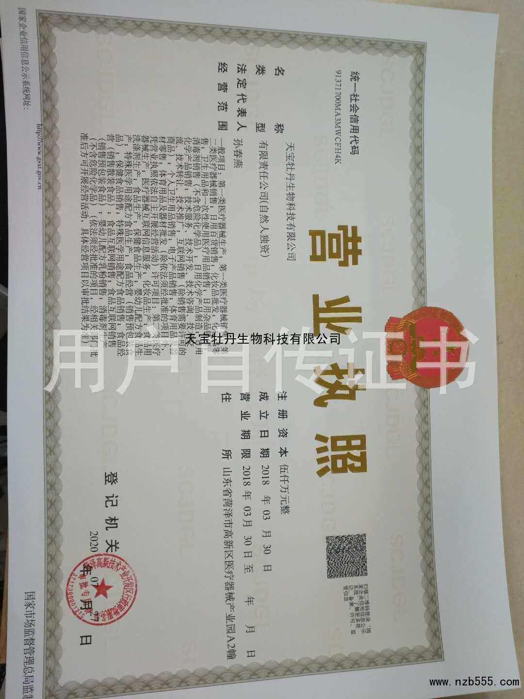 | 發(fā)證機(jī)構(gòu): | 菏澤高新技術(shù)產(chǎn)業(yè)開(kāi)發(fā)區(qū)行政審批稅務(wù)局 | 發(fā)證時(shí)間 : | 2020-07-27 |