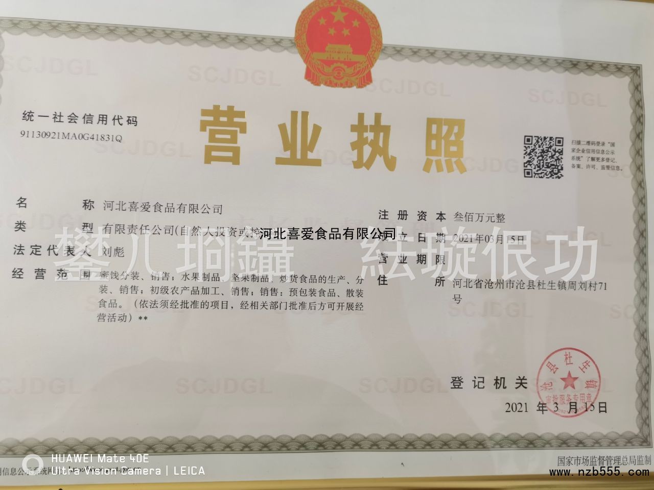 榮譽(yù)資質(zhì) 河北喜愛食品有限公司