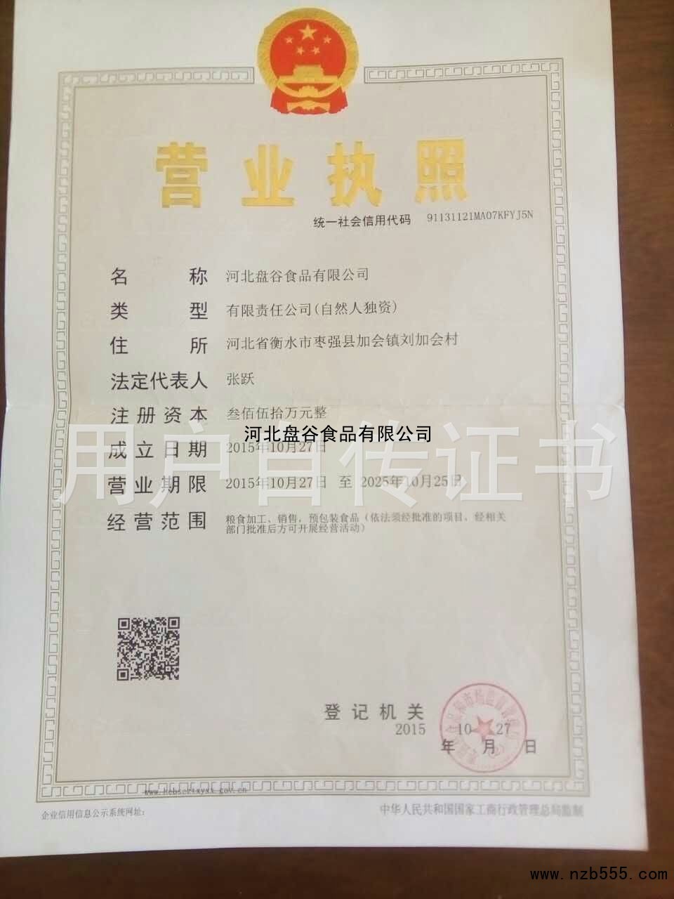 | 發(fā)證機(jī)構(gòu): | 衡水市棗強(qiáng)縣市場(chǎng)監(jiān)督管理局 | 發(fā)證時(shí)間 : | 2015-10-27 |