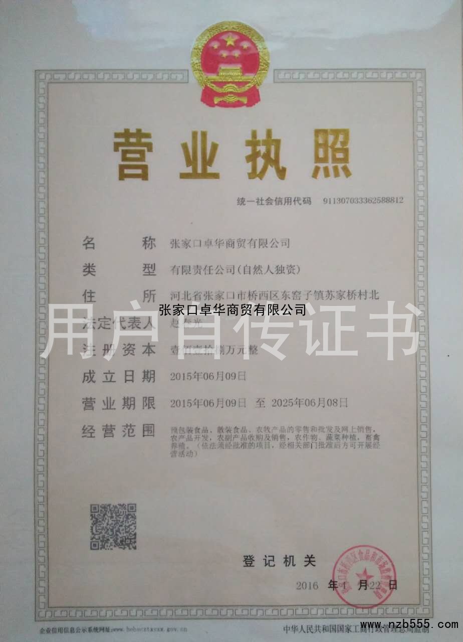 | 發(fā)證機(jī)構(gòu): | 張家口市橋西區(qū)市場(chǎng)監(jiān)督管理局 | 發(fā)證時(shí)間 : | 2016-04-22 |
