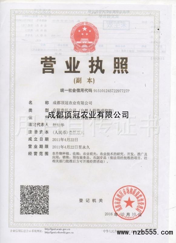 | 發(fā)證機(jī)構(gòu): | 成都市新都區(qū)市場和質(zhì)量監(jiān)督管理局 | 發(fā)證時(shí)間 : | 2016-10-10 |
